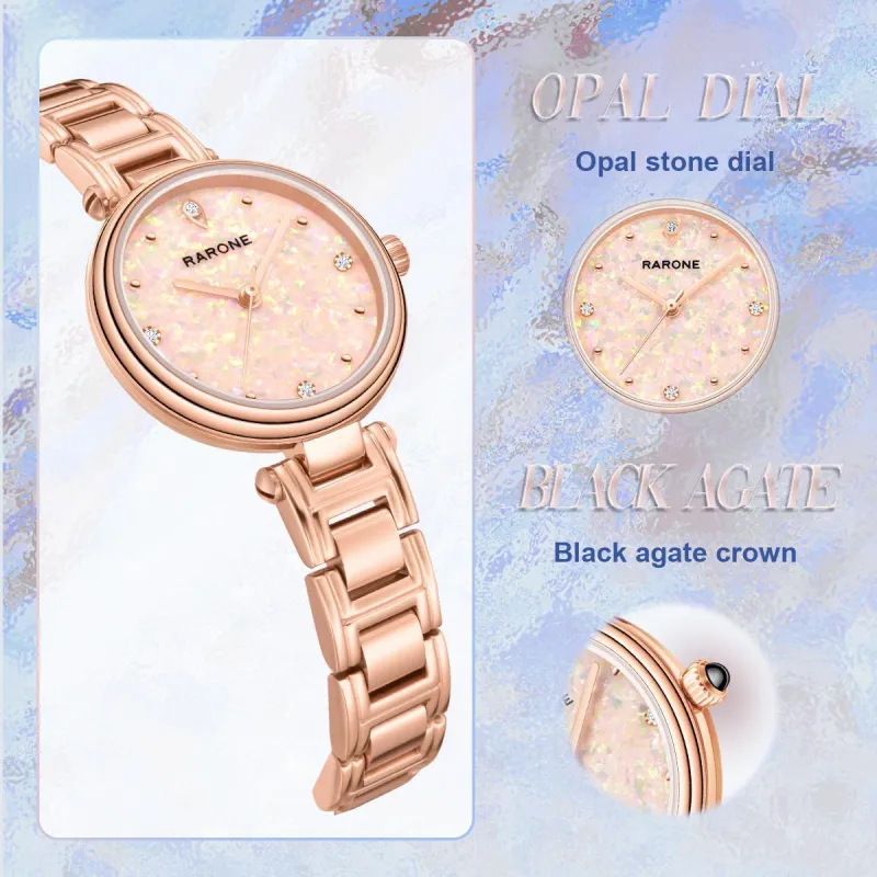 RARONE Blooming Collection Купидон Драгоценный камень Кварцевые наручные часы механизм ремешок из нержавеющей стали часы
