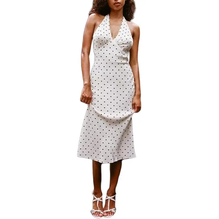Realisation Par Slip Платье Женское Белое с Черным Гороховым Узором
