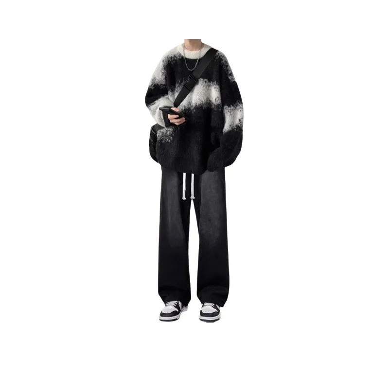 Свитер черный + белый, длинный рукав, рубашка + черные джинсы