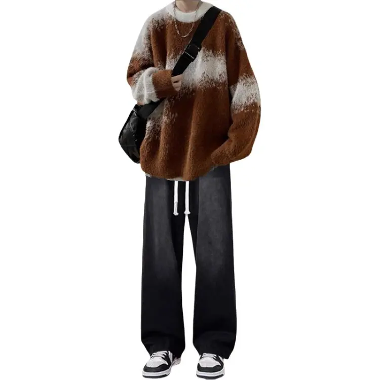 Свитер, кофе + белый, с длинными рукавами + черные джинсы