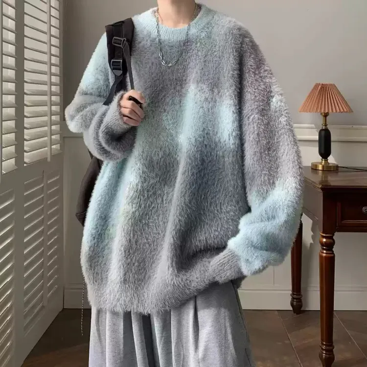 Свитер синий + белая длинная рукавная рубашка + черные джинсы
