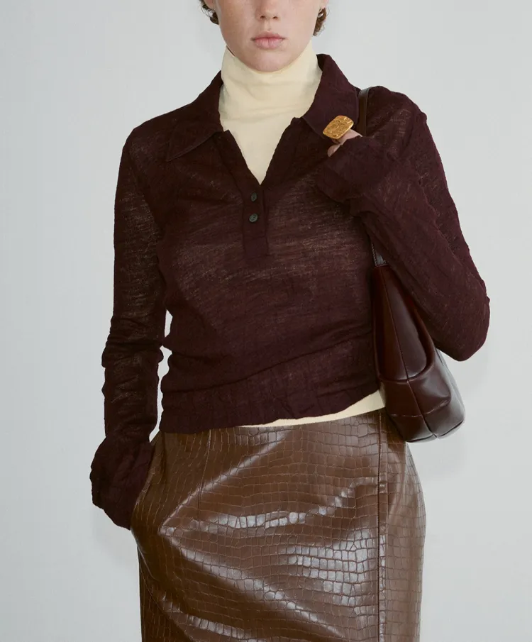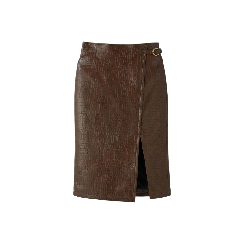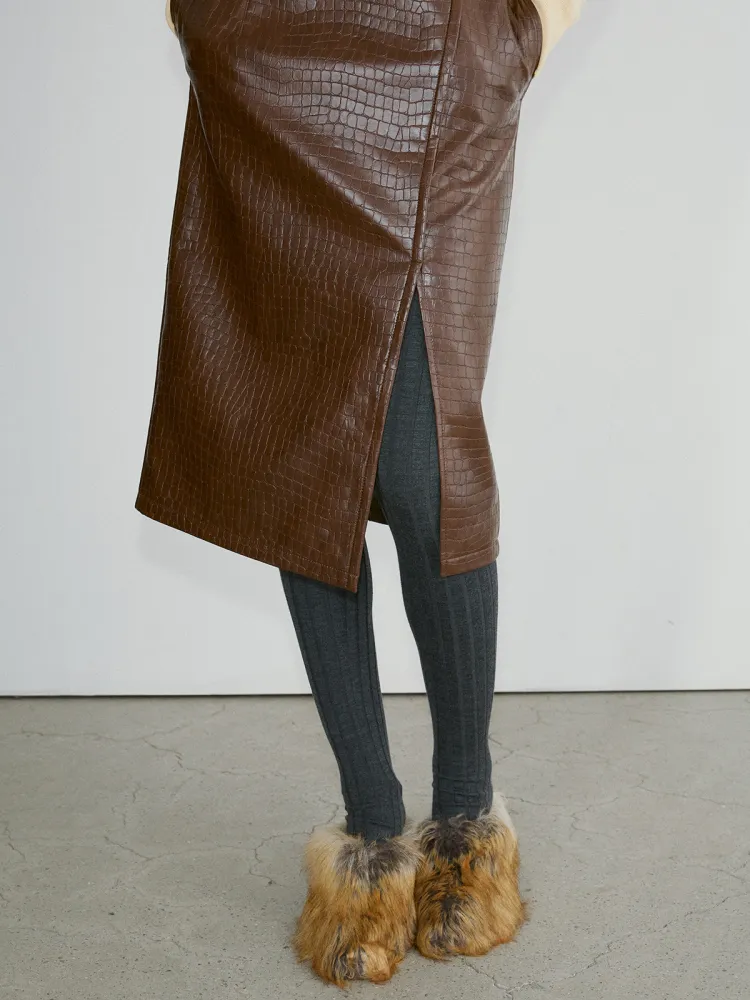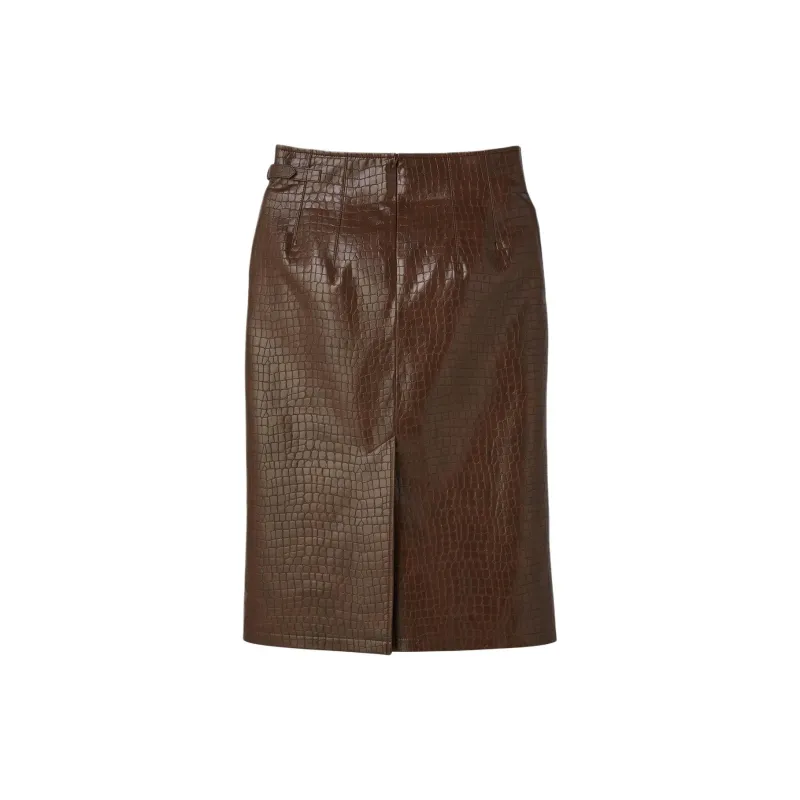 RECTO FW24 Leona Крокодил Effect Slit Юбка Повседневный Длинный Юбка Женские Коричневый Коричневый