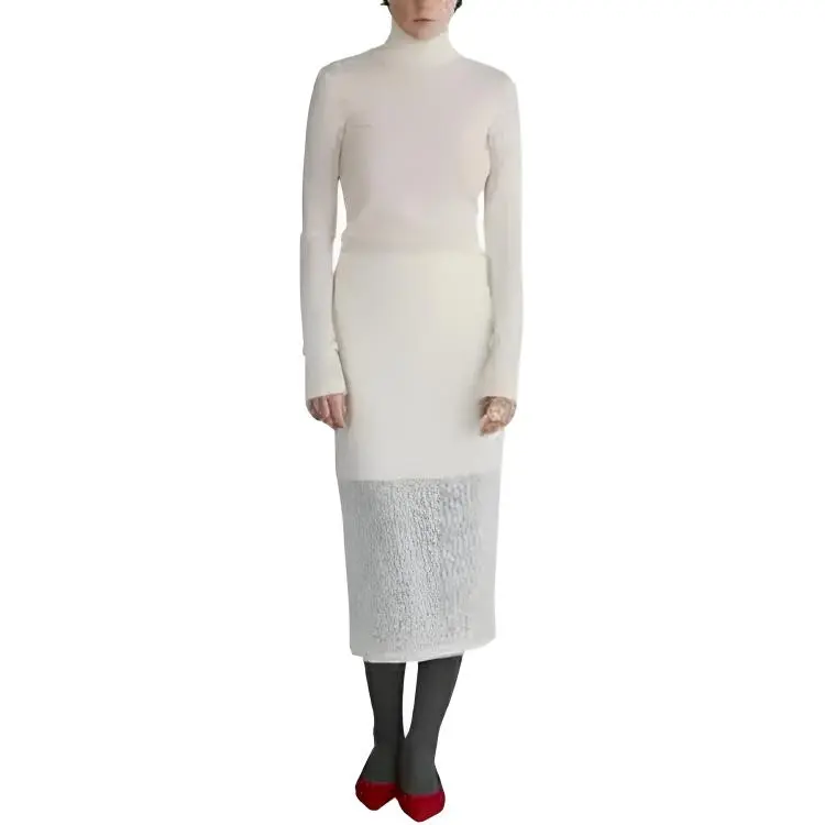 RECTO FW24 Покрытие Rc Жаккард Логотип Черепаха Шея Топ Свитер Женские Крем Крем