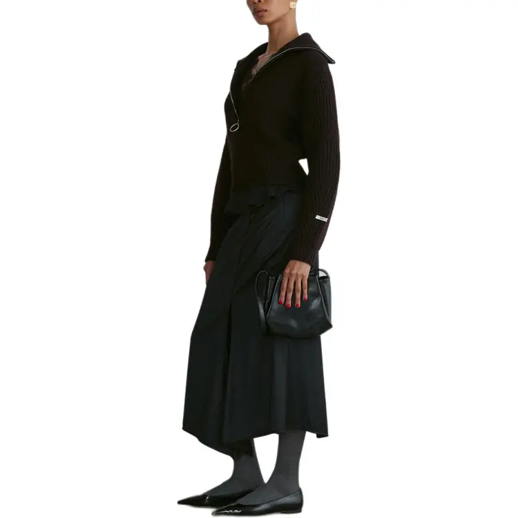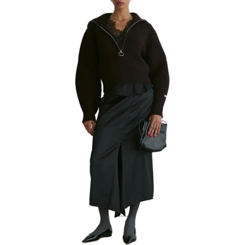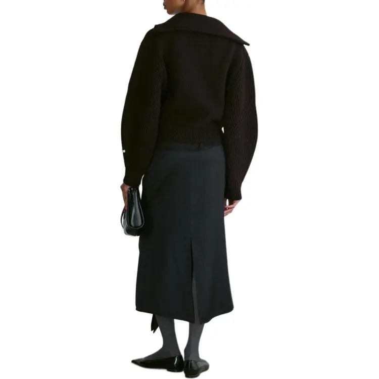 RECTO FW24 STRUCTURED Полузастежка Вверх KNIT Свитер Женские Винтажный коричневый
