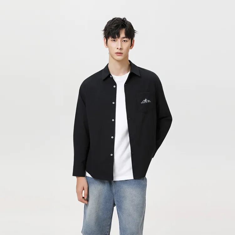 [Длинный рукав рубашка] Черный (Красный бобы, горы, логотип на груди)