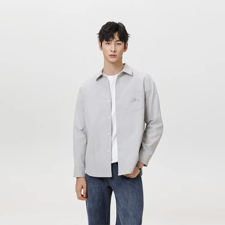 [Длинный рукав рубашка] Светло-синий (с красным логотипом "Бобы" и гор на груди)