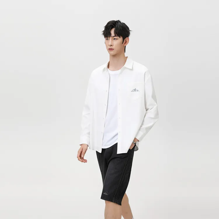 [Длинный рукав рубашка] Белый (Красный бобы, горы, логотип на груди)