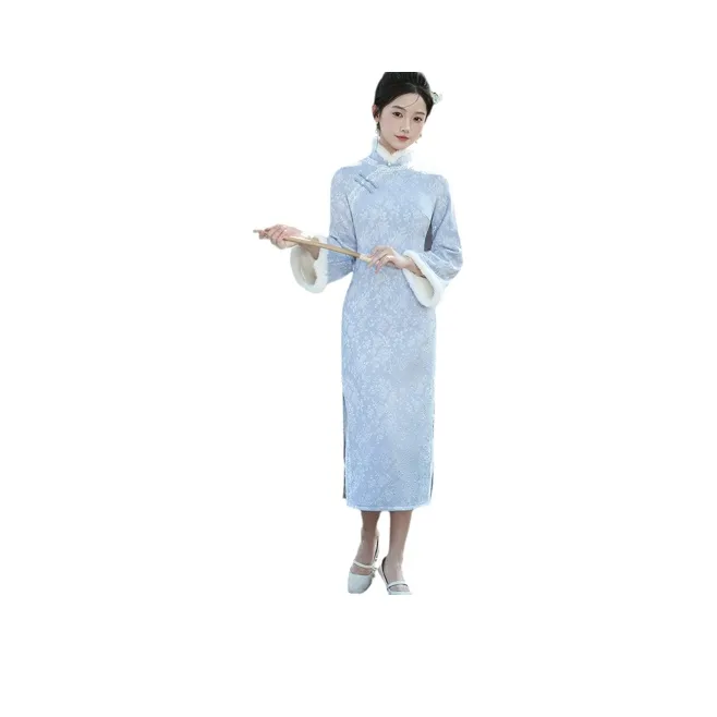 Красные цветные одежды Чонсам Женские Синий