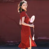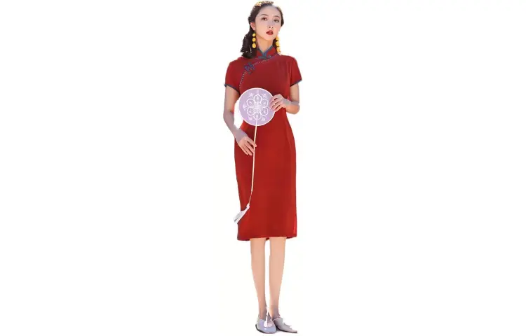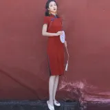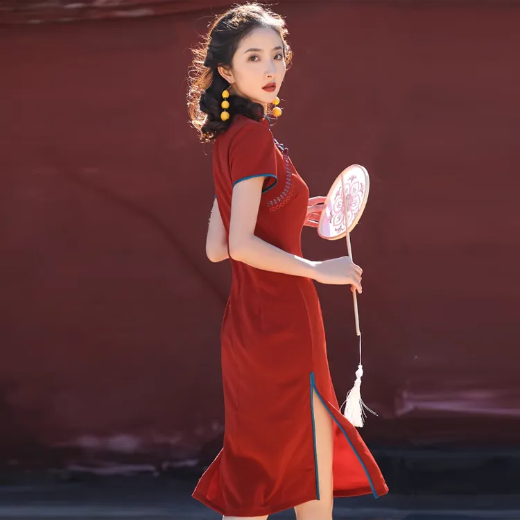 Красные цветные одежды Чонсам Женские Бордовый