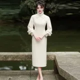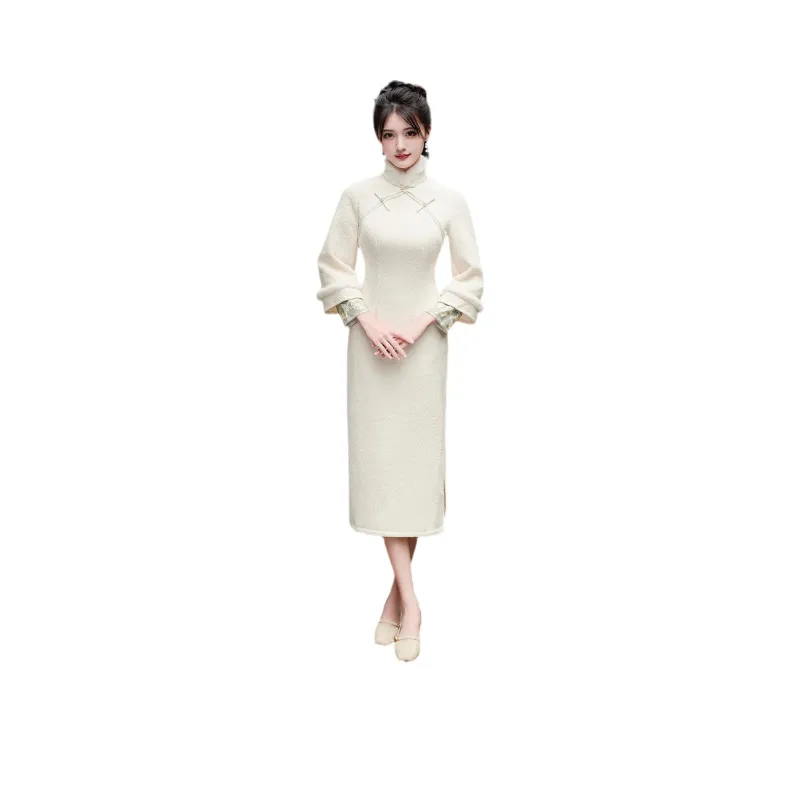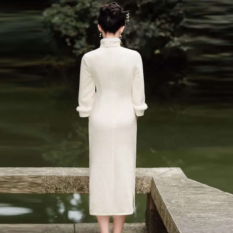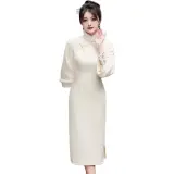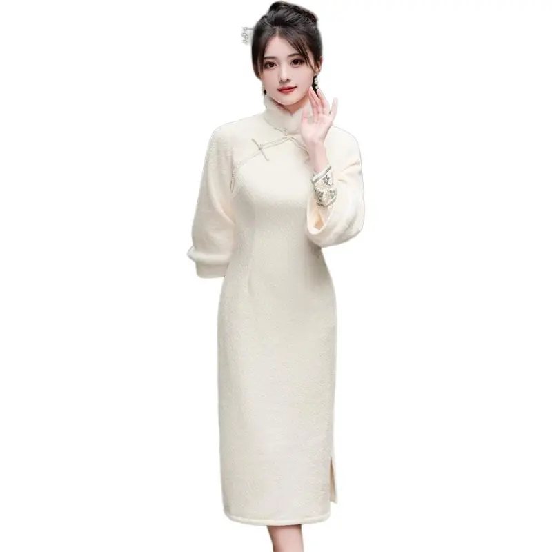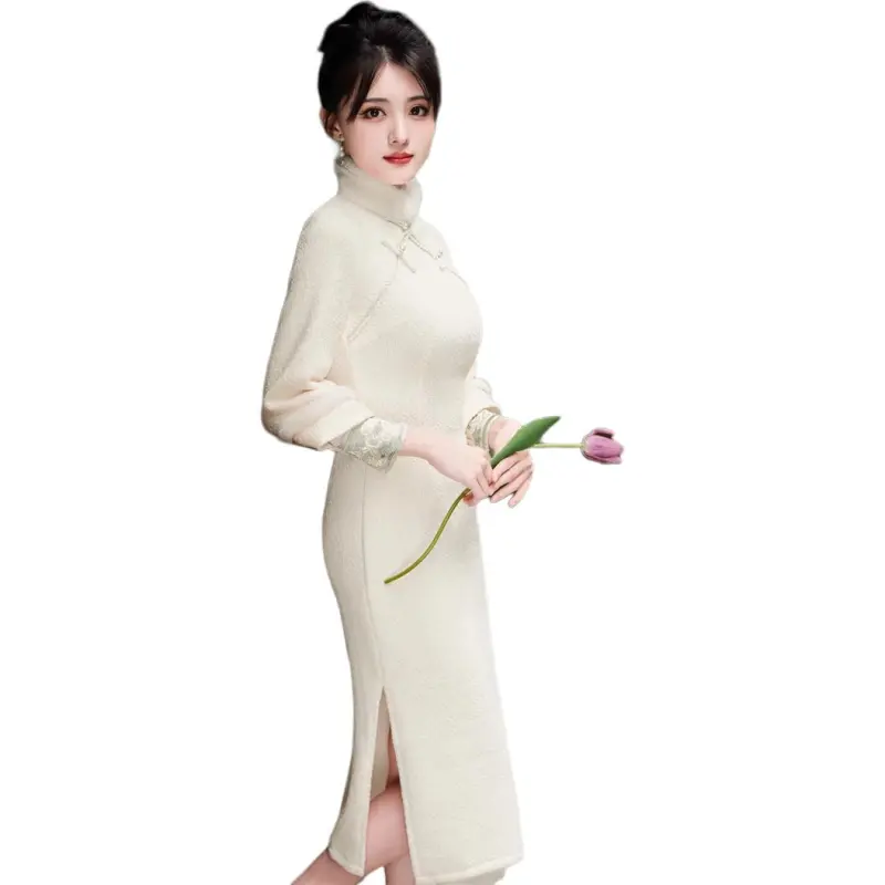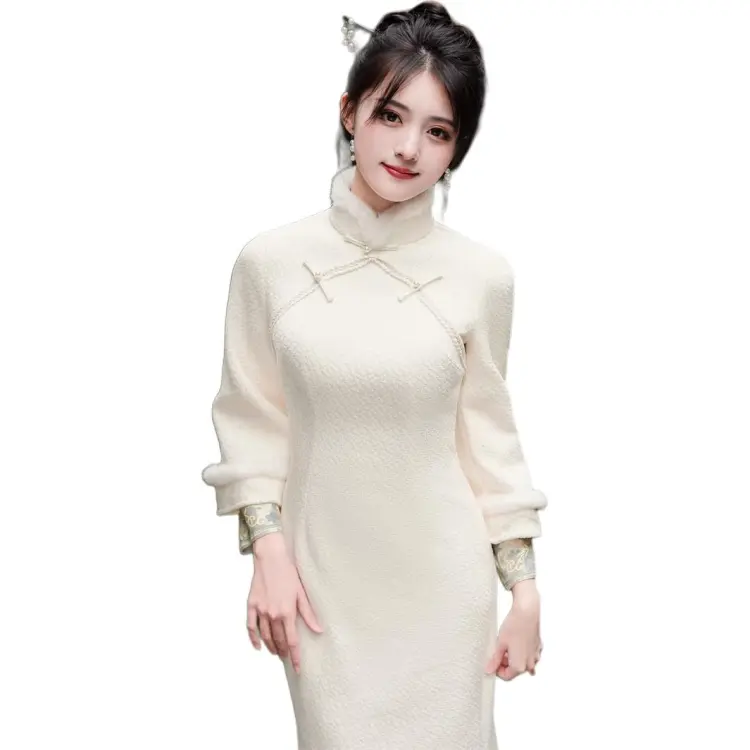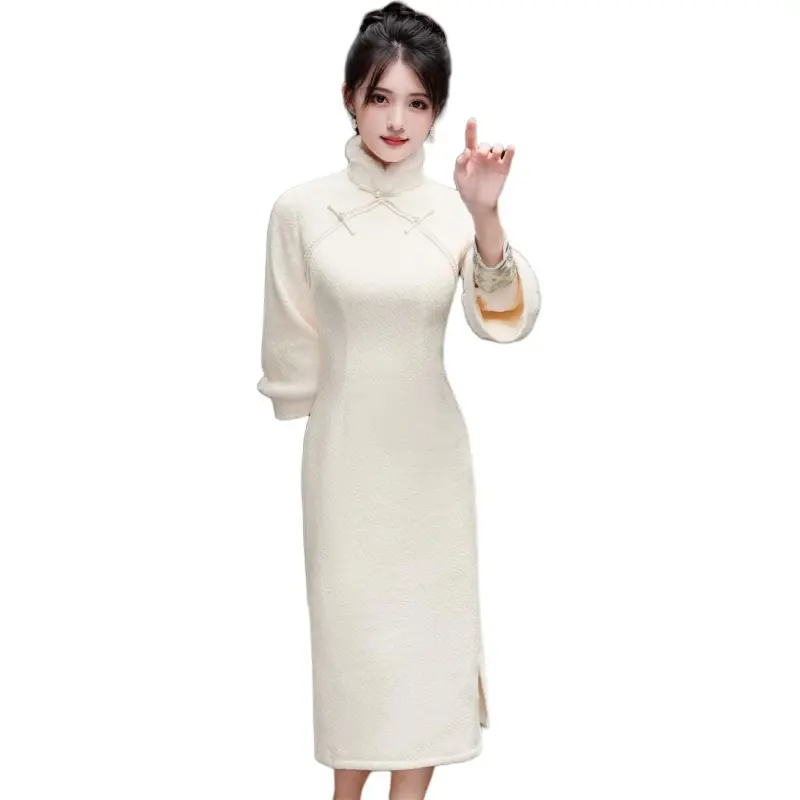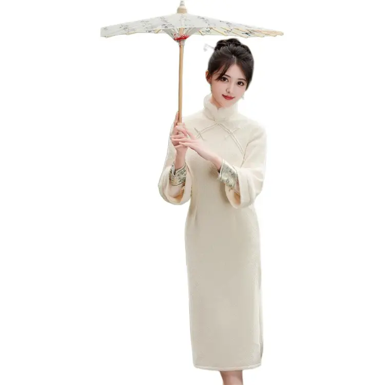 Красные цветные одежды Чонсам Женские Белые