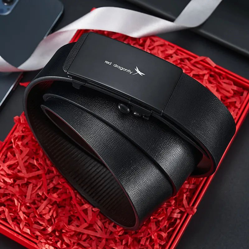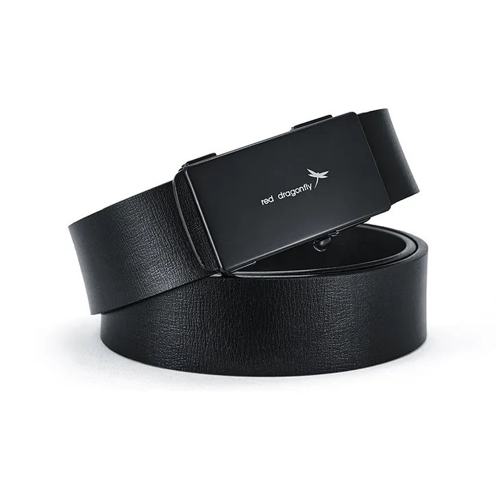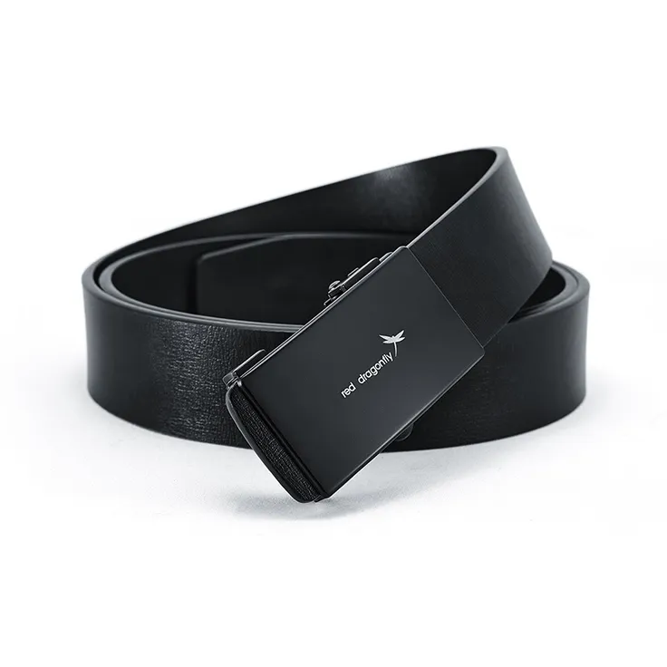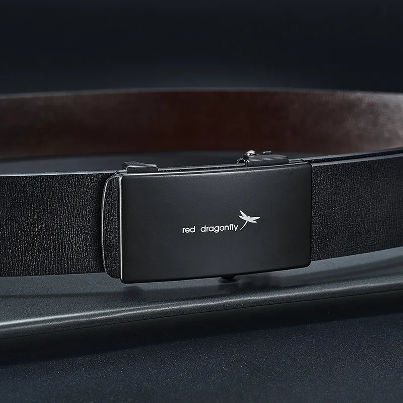 RED DRAGONFLY Бизнес Легкий Спилок Коровья Кожа Автоматическая Застежка Ремень Мужской Черный Ширина 3,3 см