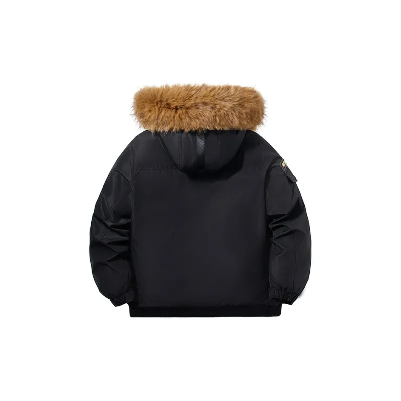 Цвет:Чёрный хлопковый пуховик + коричневый меховой воротник