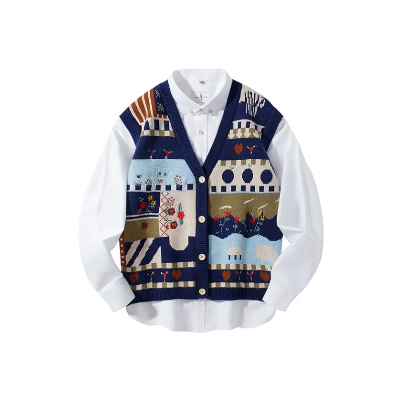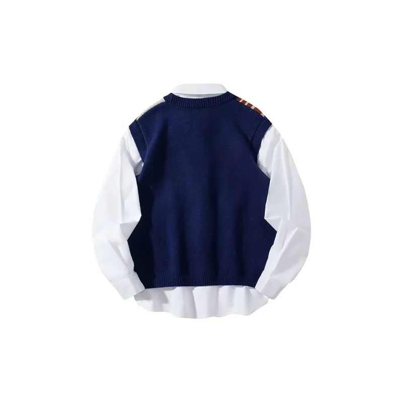 Комплект:Темно-синий синий жилет + белая рубашка