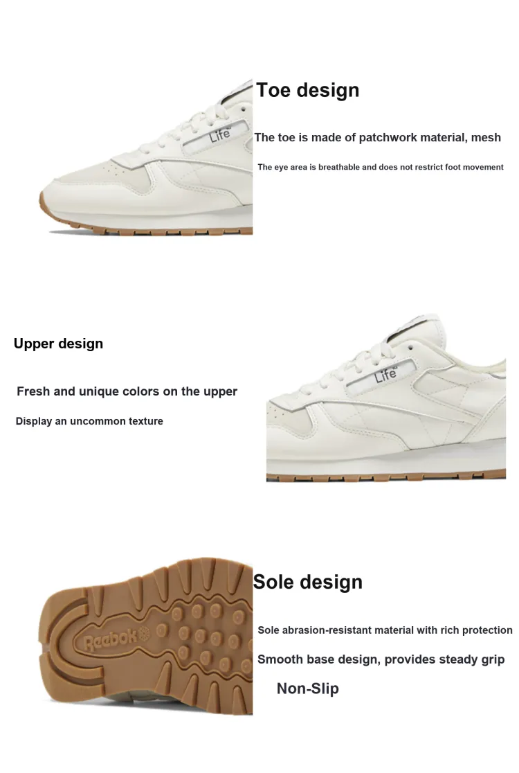 Reebok Classic Leather Low Топ Беговые кроссовки Унисекс Бежево-коричневый