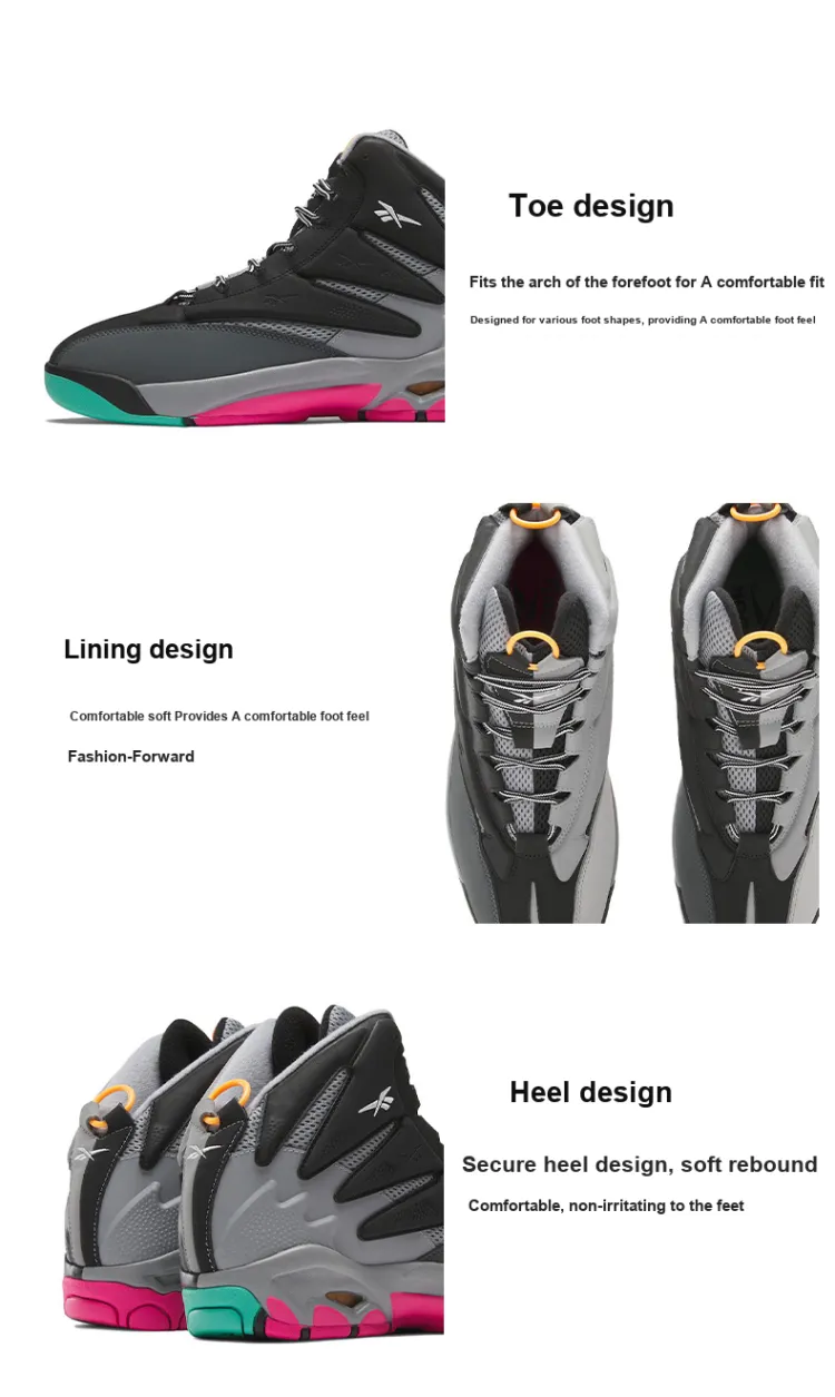 Reebok The Blast 'The Alamo' Амортизация Износостойкий MID Топ Винтажные баскетбольные кроссовки Мужской Черный Серый