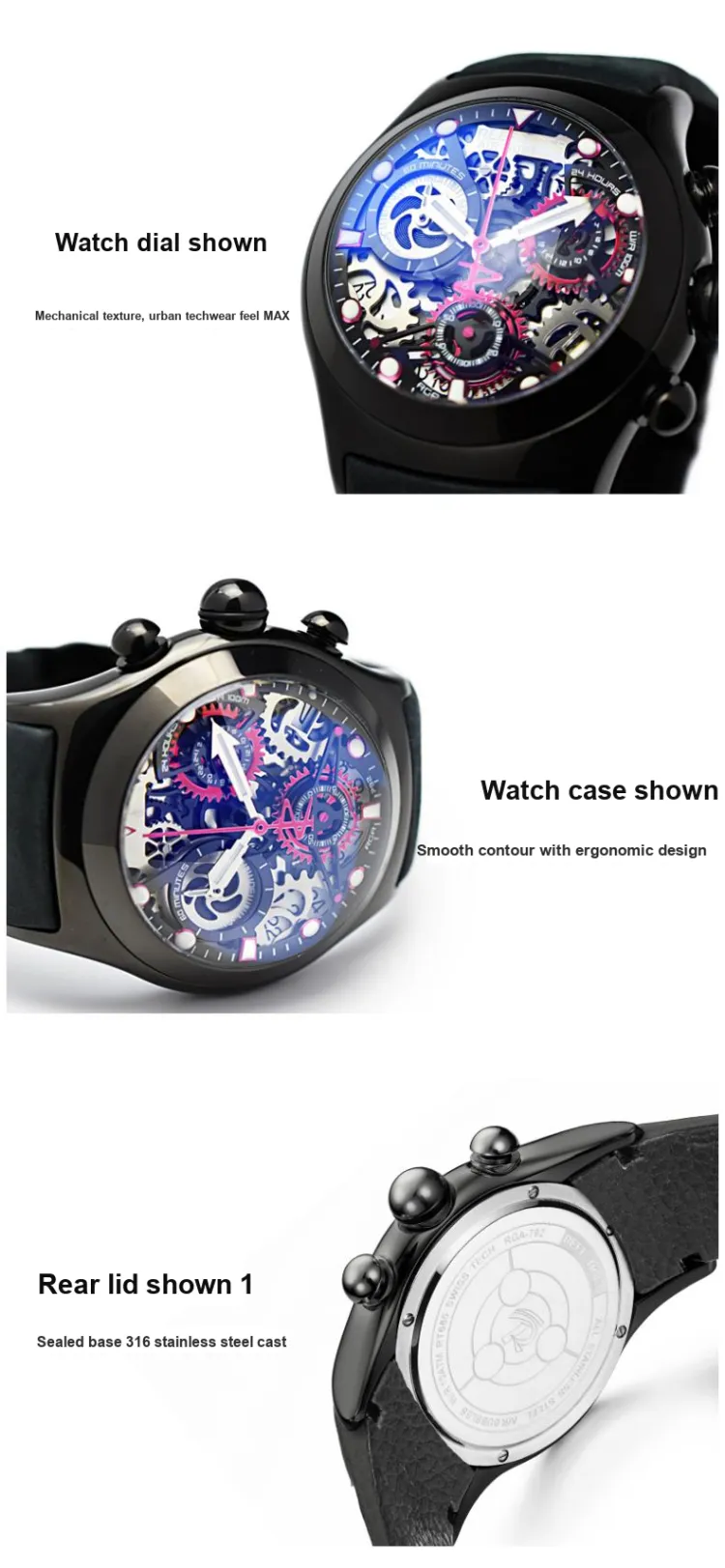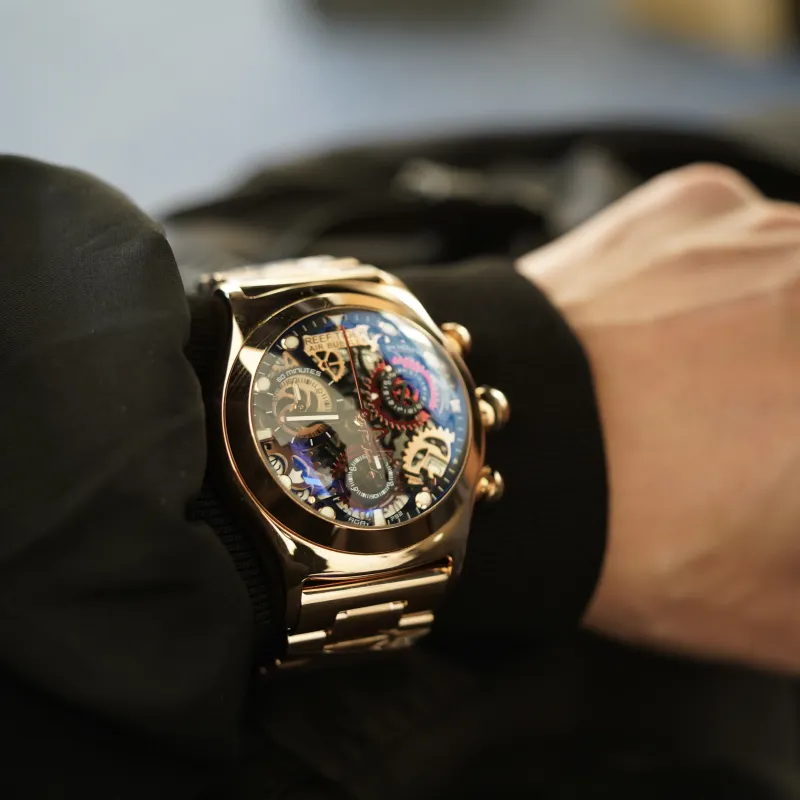 Спецификации:RGA792-Золотой корпус, черно-красный стальной браслет