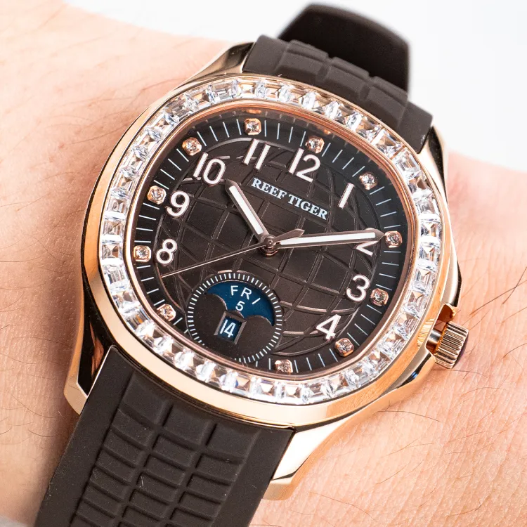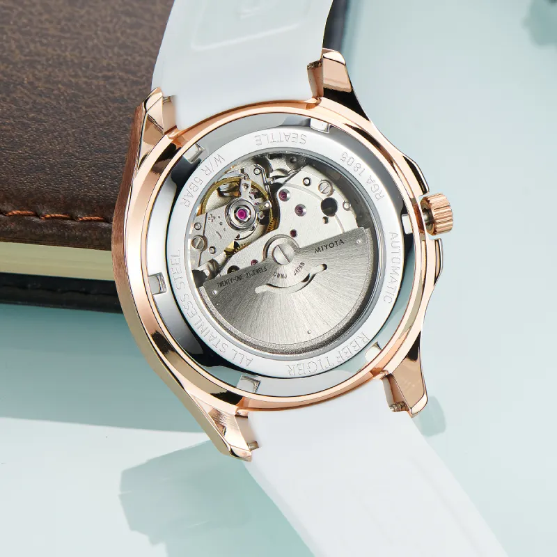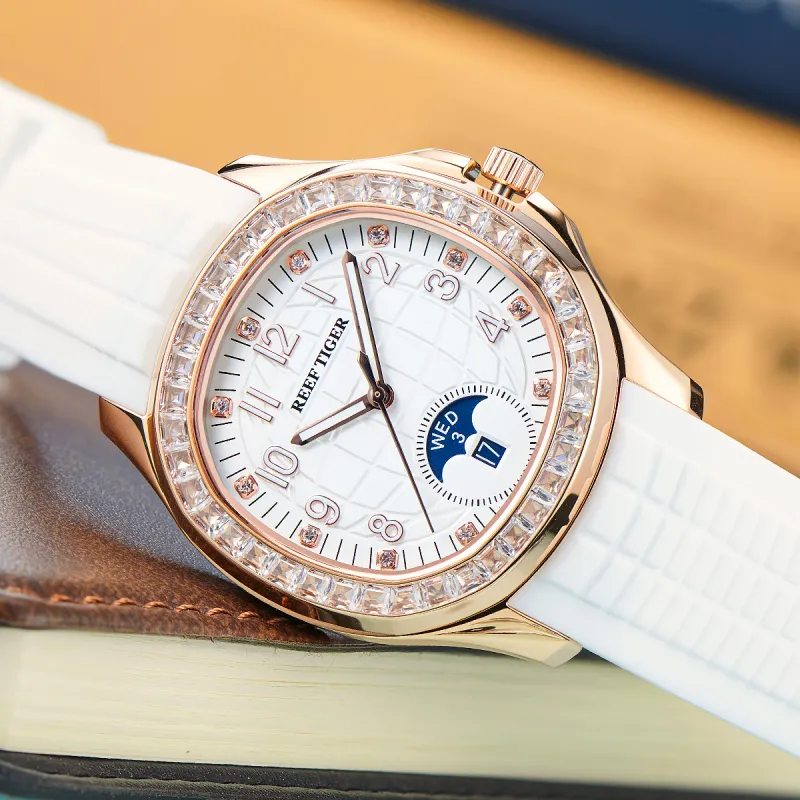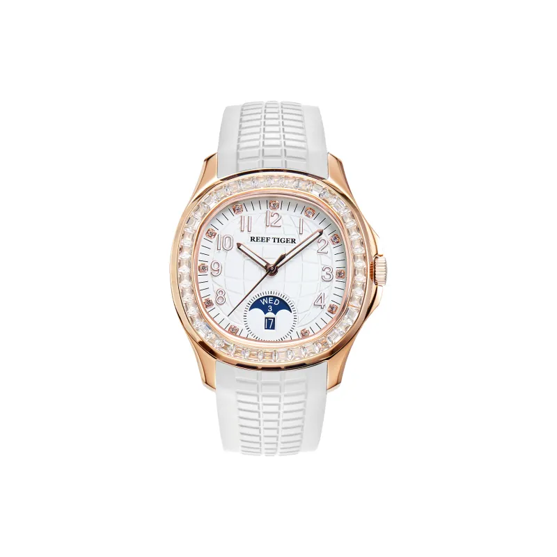 REEF TIGER Автоматический Механический Механизм Силиконовый Ремешок Часы Мужские Белый Циферблат