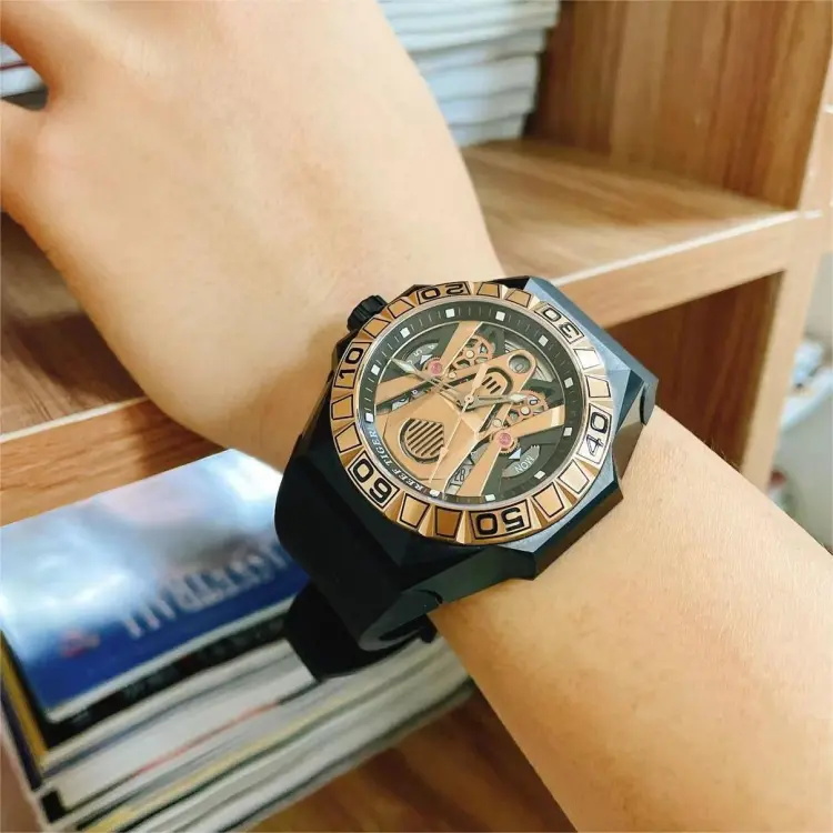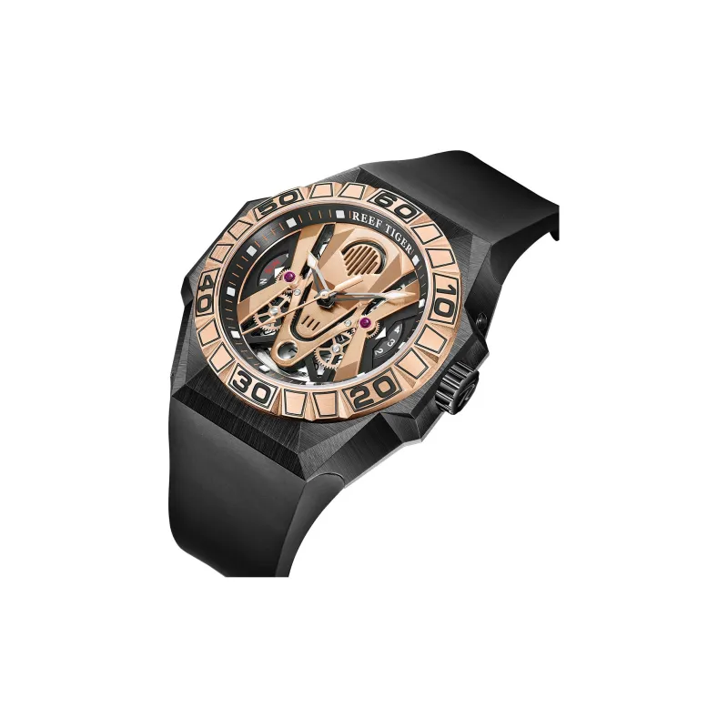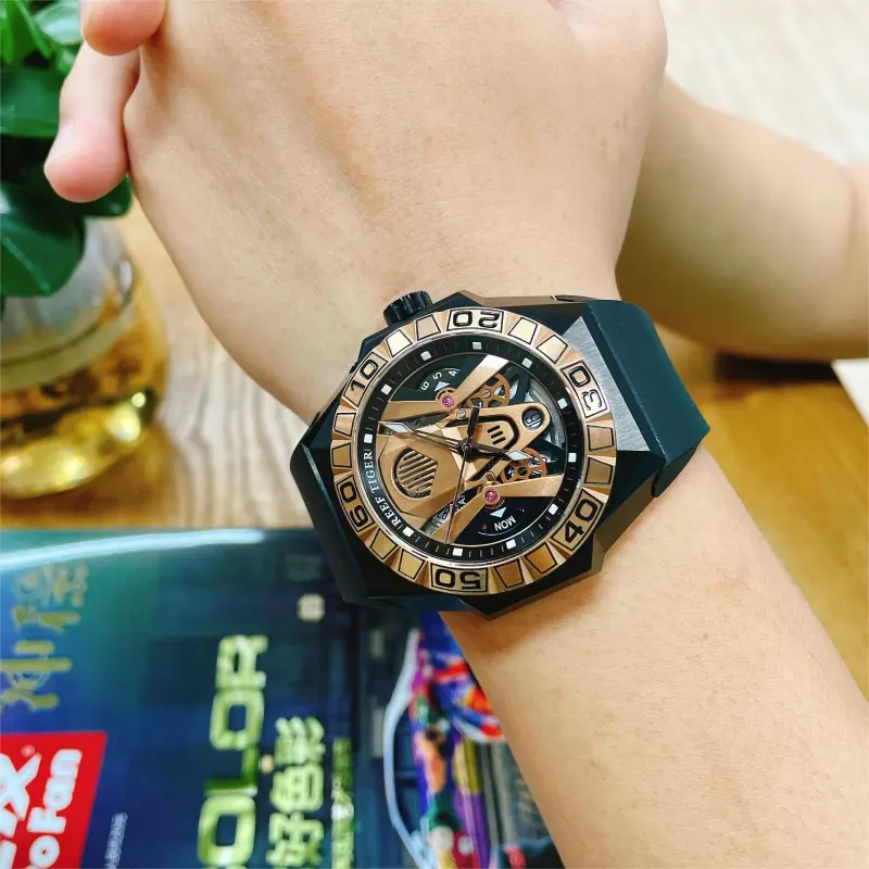 REEF TIGER Black Shark Collection Автоматический Механический Механизм Часы Мужские Золото Циферблат RGA6922 BPR