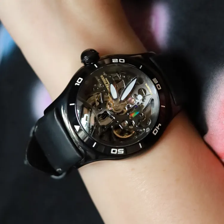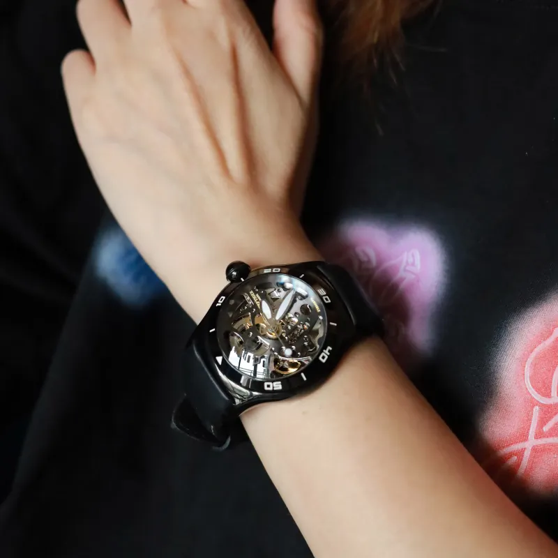 REEF TIGER Aurora Collection Mecha Bubbles Автоматический Механический Механизм Часы Мужские Черный Циферблат RGA70S7 S PHH