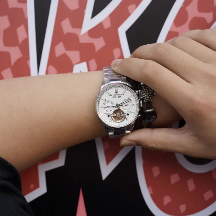 REEF TIGER Seattle Collection Captain II Механические Мужские Часы с Белым Циферблатом RGA1667 BB