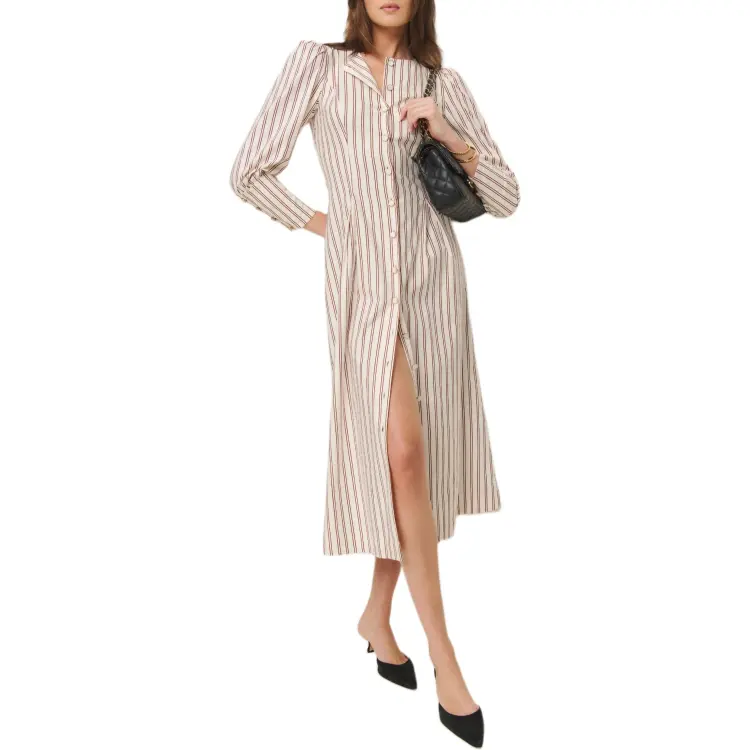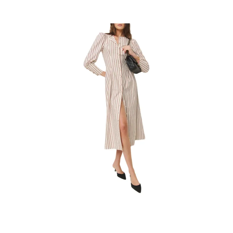 Reformation Halia Платье Длинное с длинными рукавами женское красный бежевый белый