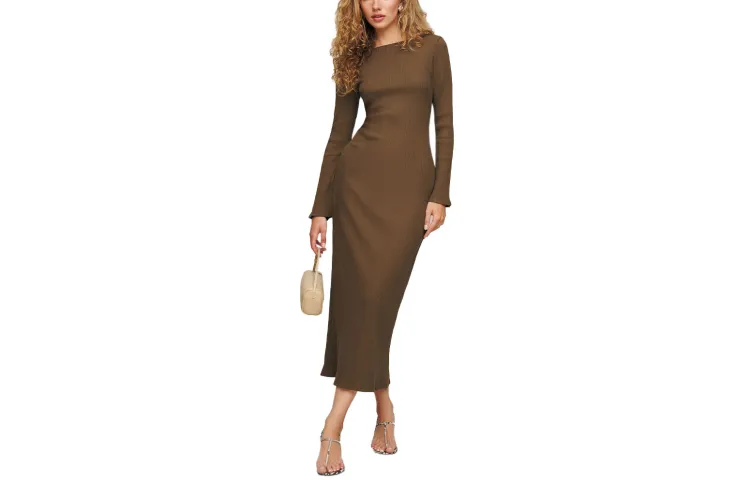 Reformation Лесной зеленый Женские Длинные Платья с Рукавами