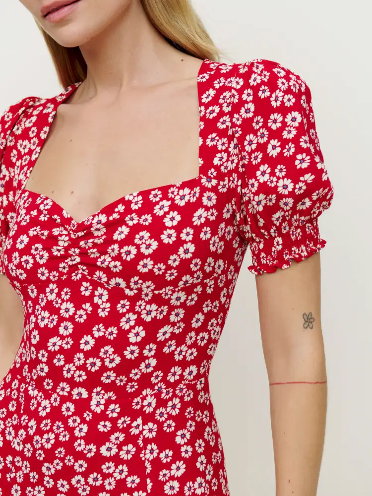 Reformation Jenna Red Женские Короткие Платья с Рукавами