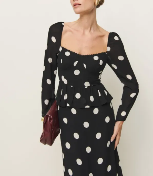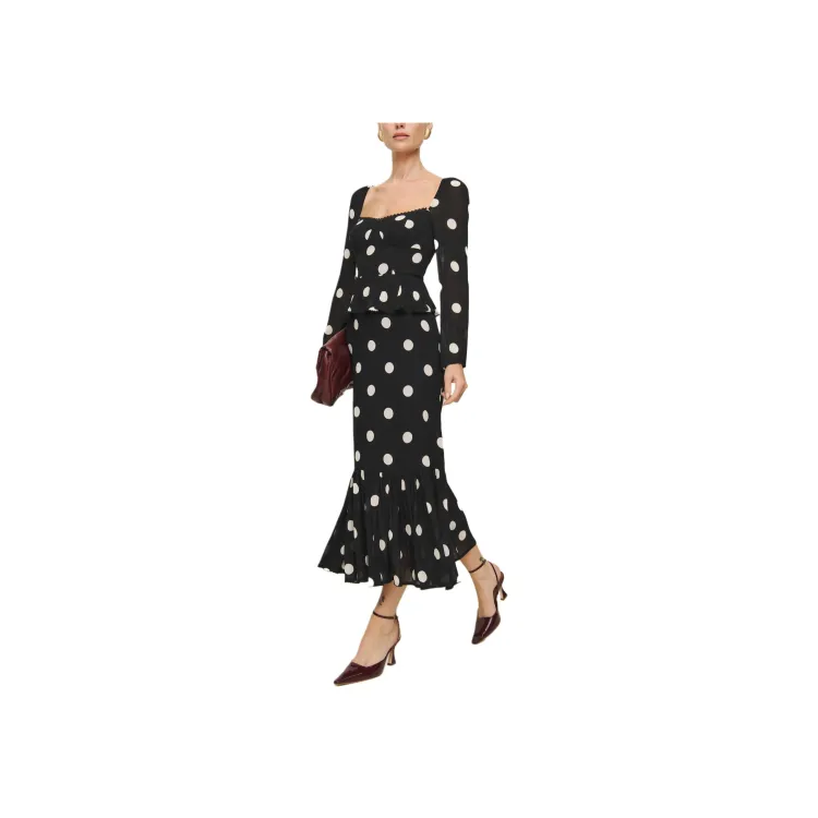 Reformation Zandra Платье Длинное с длинными рукавами женское лунный свет пятно