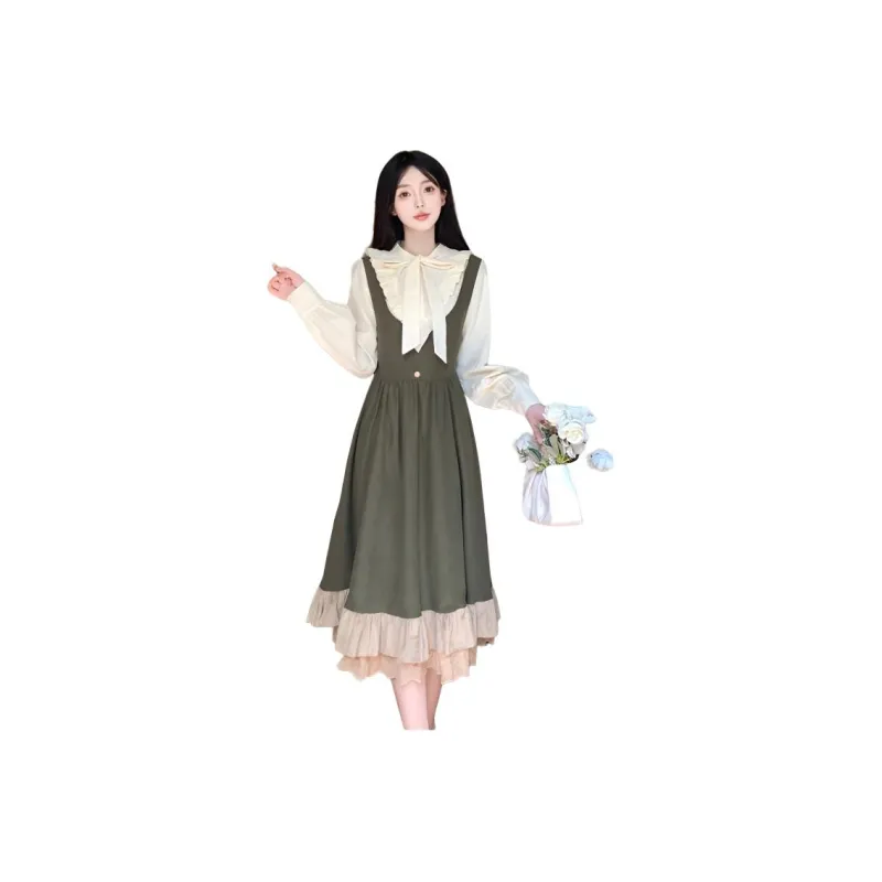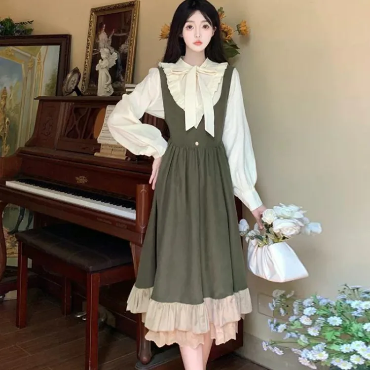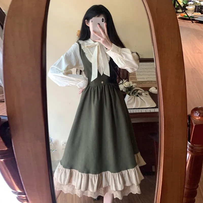 Длинный рукав рубашка + платье с лямками