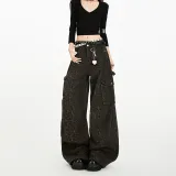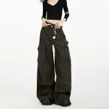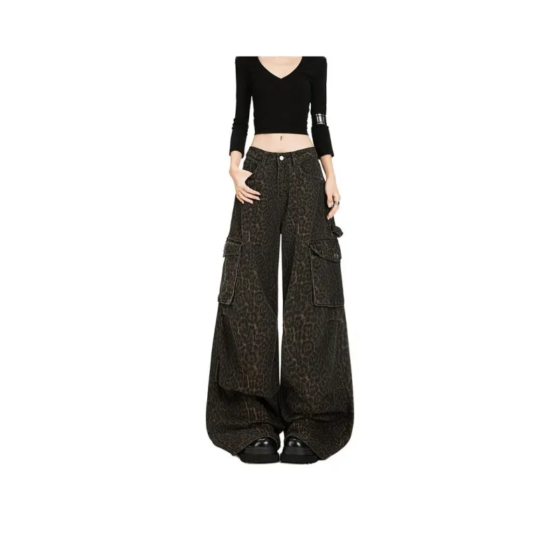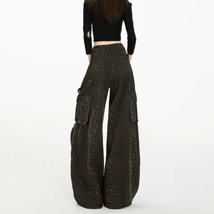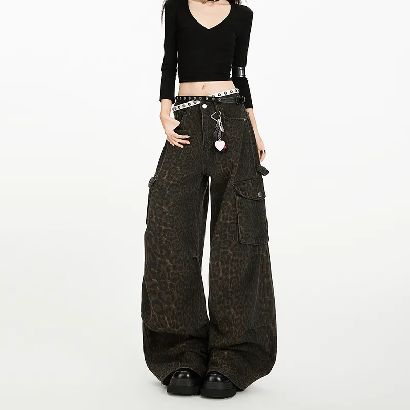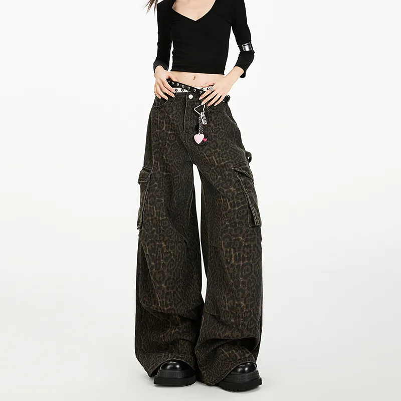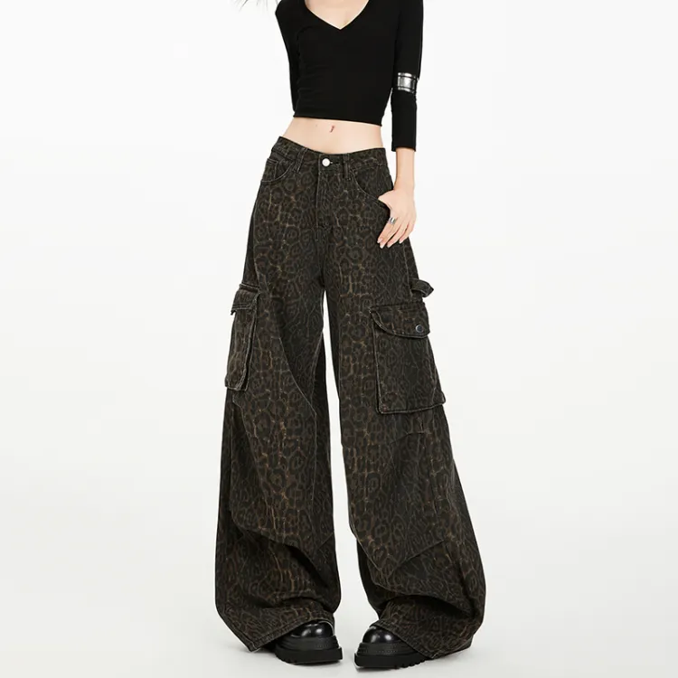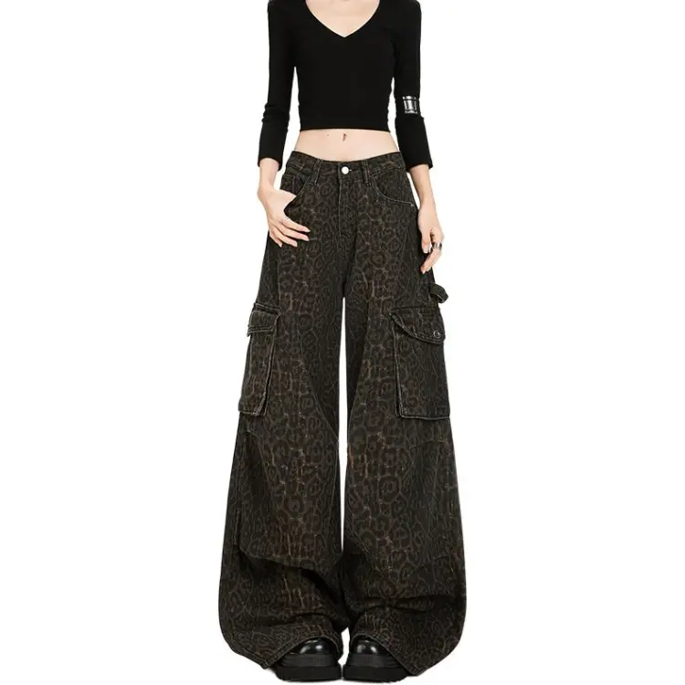 RENBEN Леопардовый принт карго брюки женские джинсы