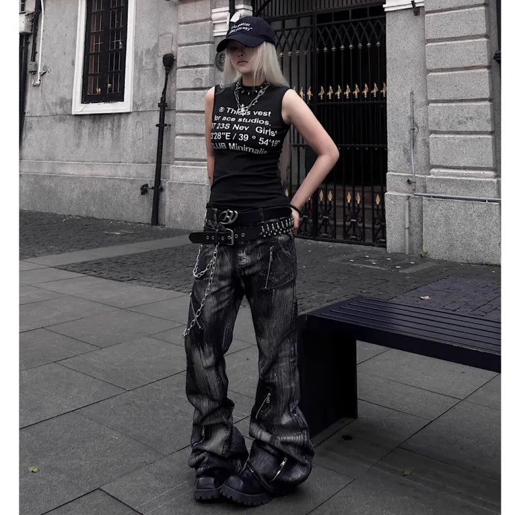 RENBEN1986 Черные Унисекс Джинсы