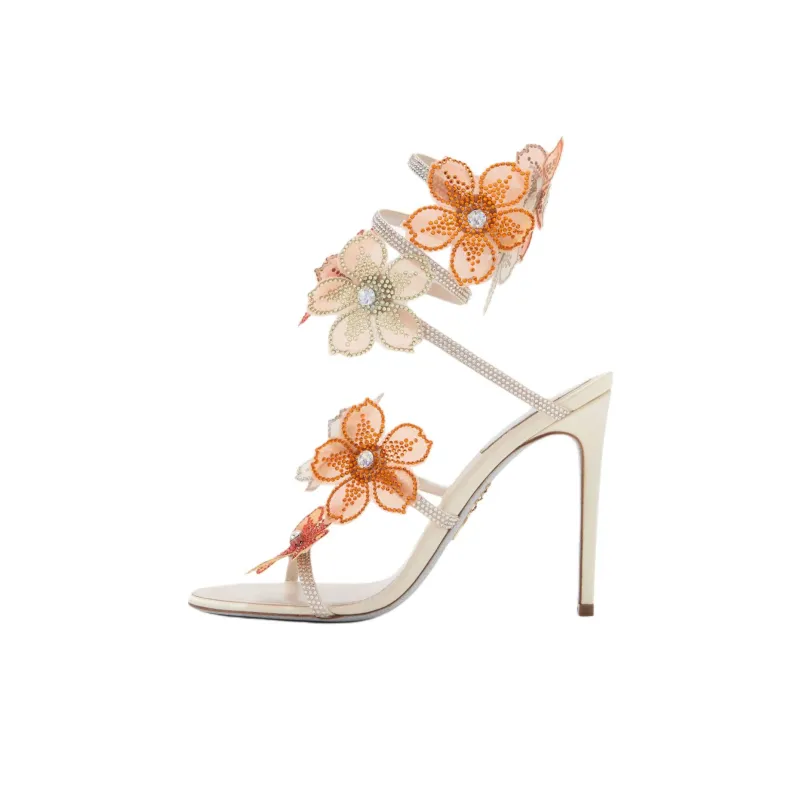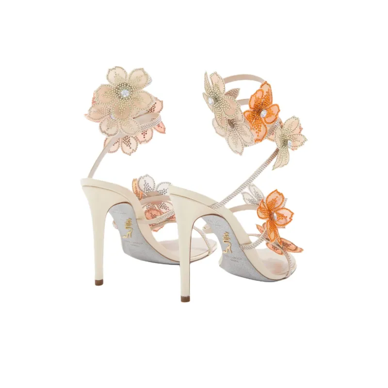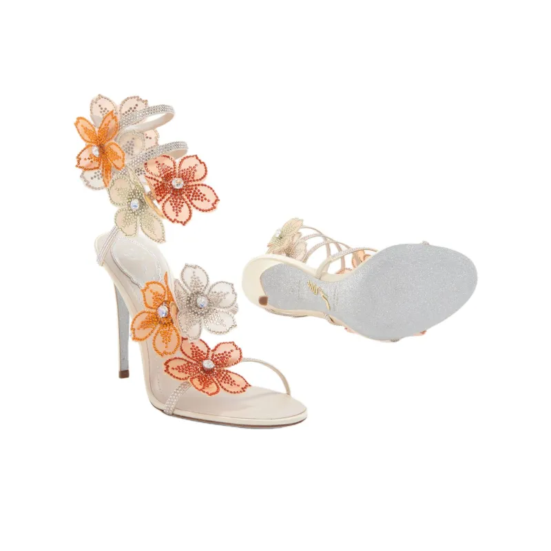 RENE CAOVILLA Айвори One Ремешок Сандалии 10,5 см Женские Белый Оранжевый