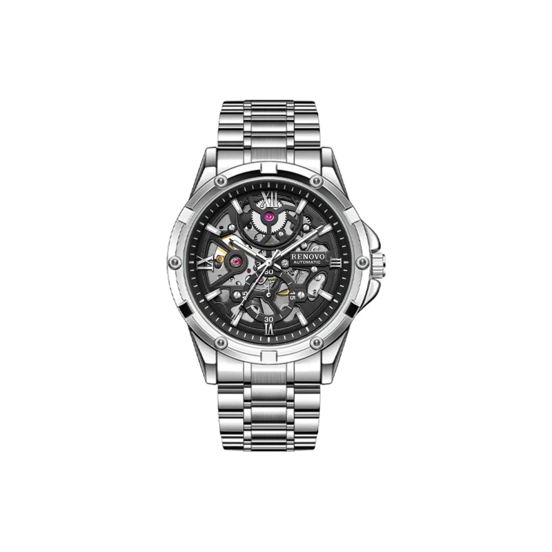 RENOVO Hardcore Movement Collection Автоматический Механический Механизм Металлический Ремешок Часы Унисекс Циферблат с Черепом