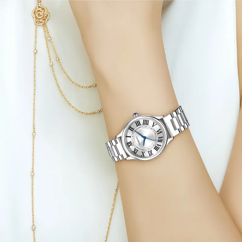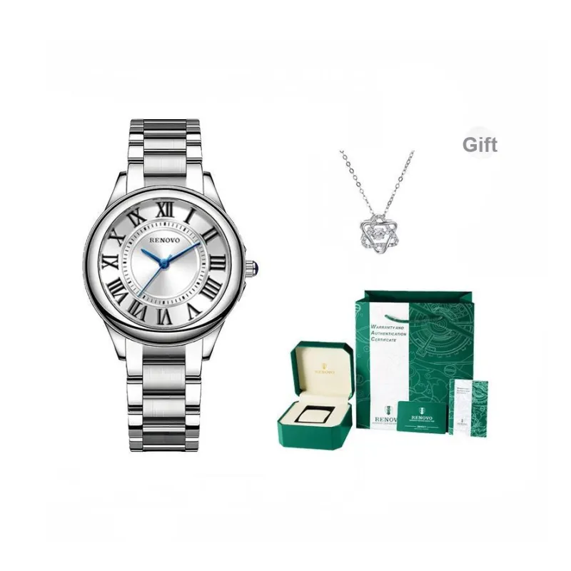RENOVO Кварцевый механизм нержавеющая сталь ремешок часы женские белый циферблат