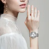 Комплект:Стальной ремешок с белым циферблатом [Шестиконечная звезда, ожерелье и зеленая тень, подарочная коробка включена]