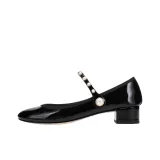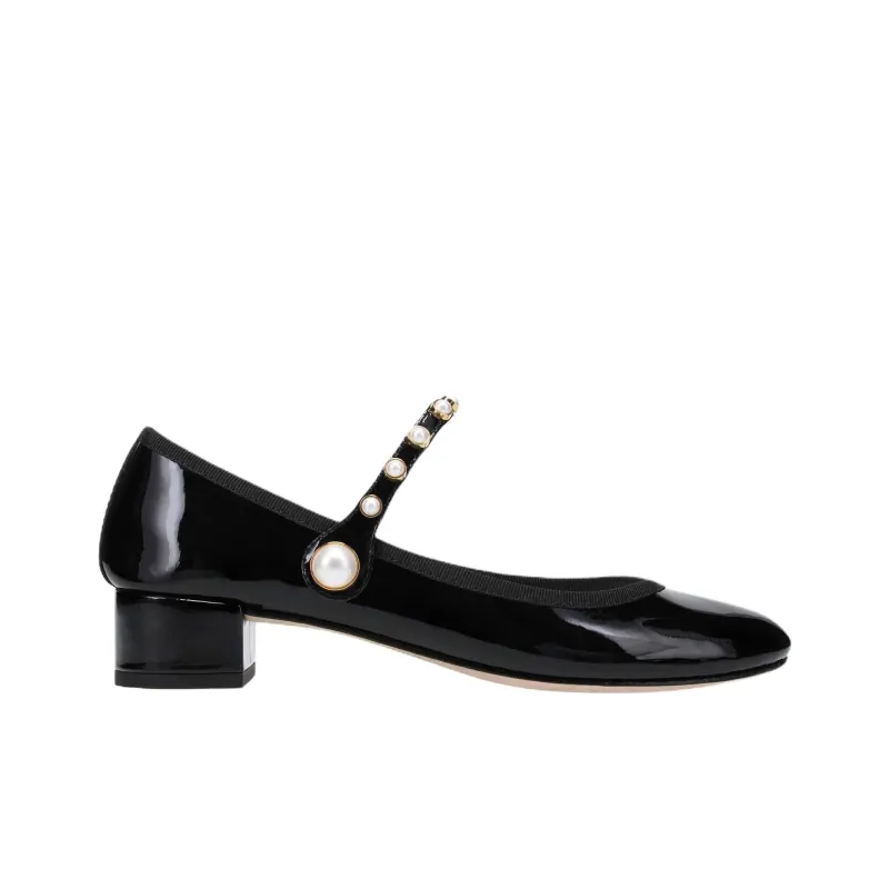 Repetto Розовый Perle Грубый каблук Туфли Мэри Джейн 3 см Женские Черный