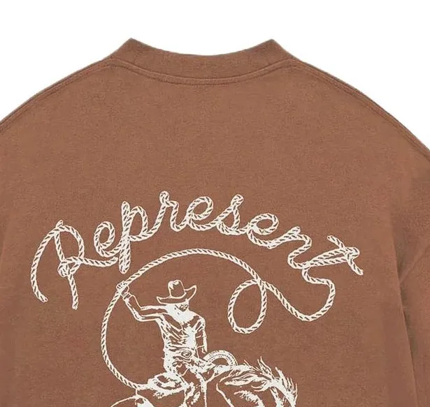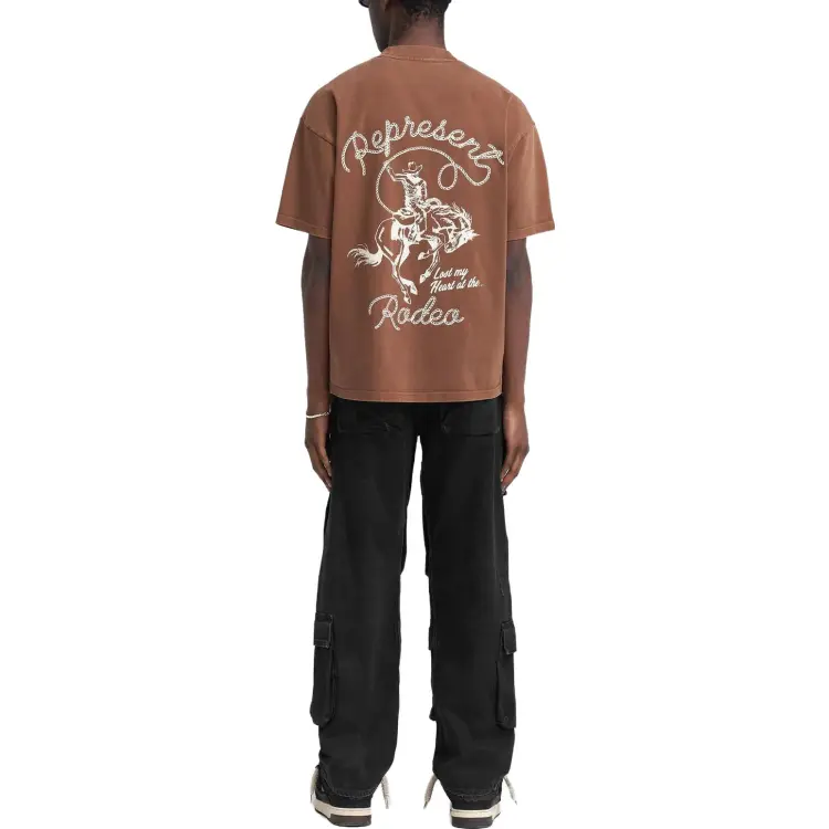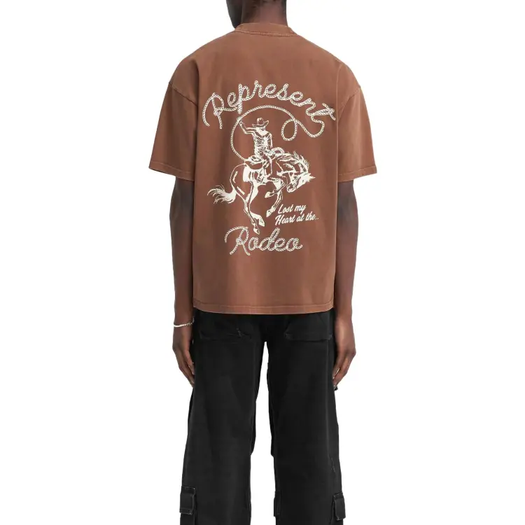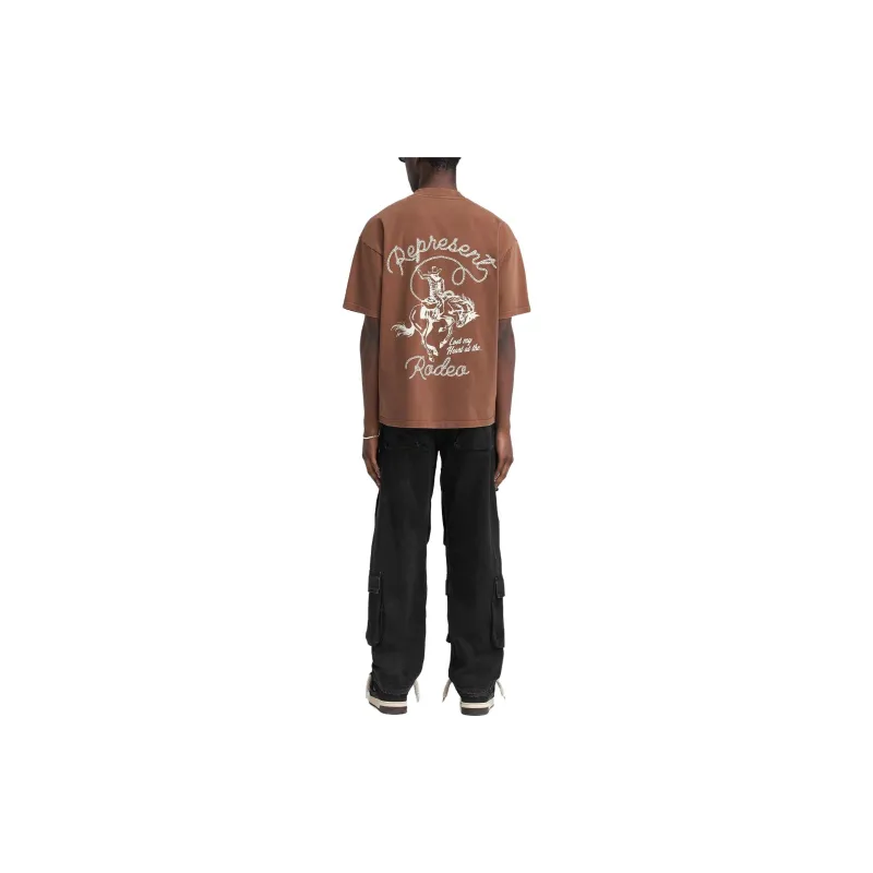 REPRESENT Цепь Стич Rodeo T-Рубашка T-Рубашка Мужская Винтаж Коричневый