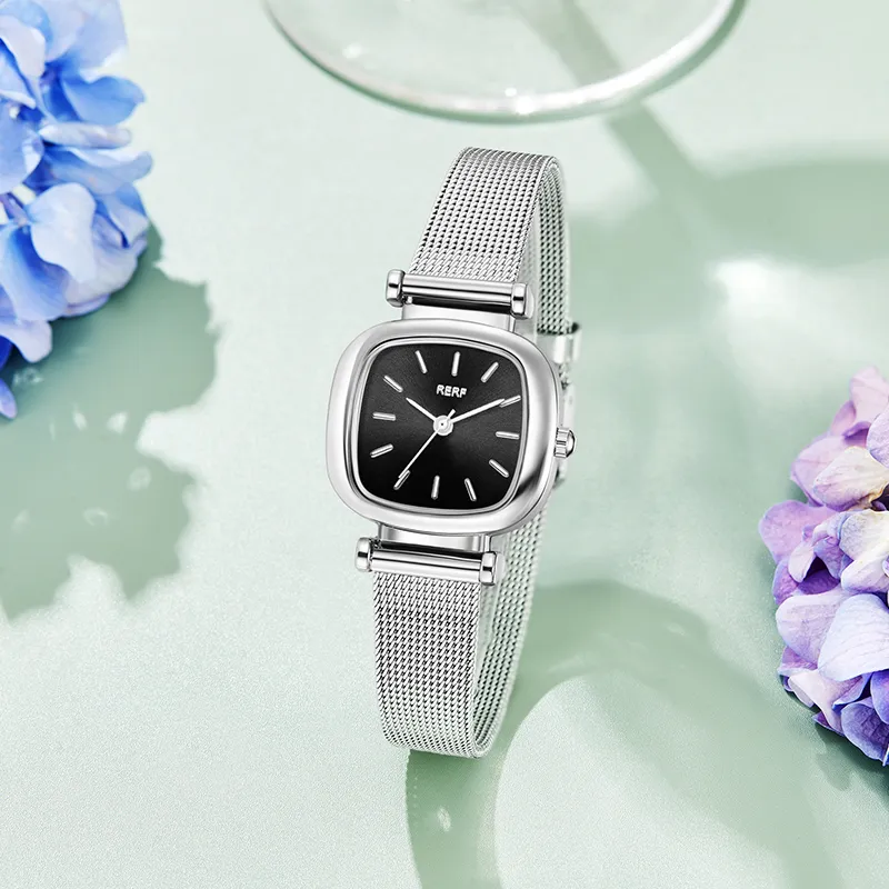 RERF Кварцевый механизм сплав ремешок женские часы серебристый циферблат