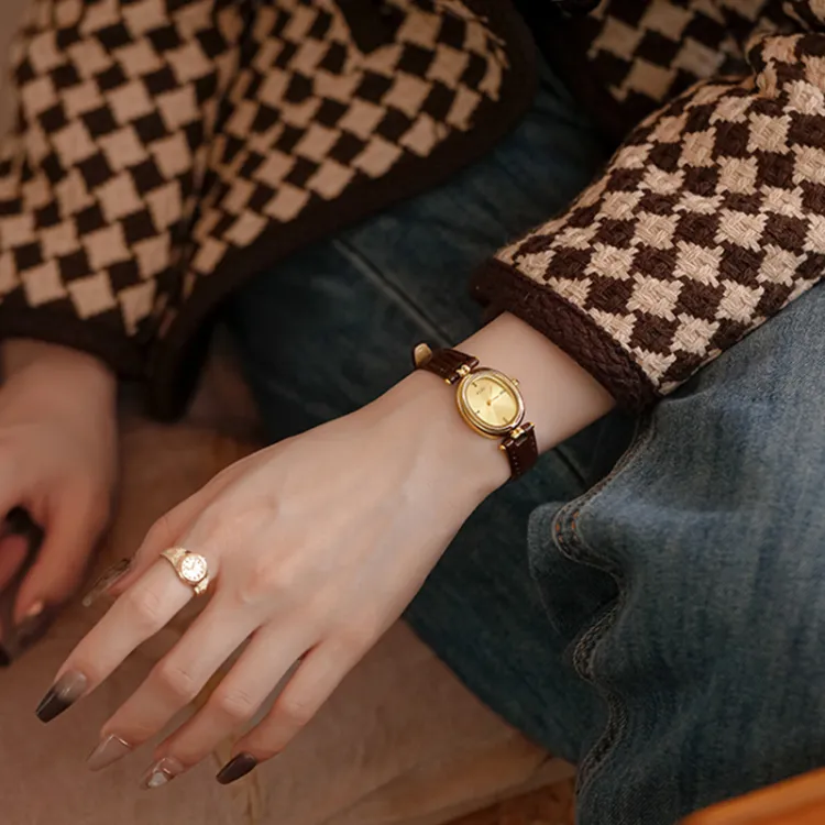 RERF Студенты' Вечеринка Рекомендация Кварцевые часы Механизм Часы Женские Золотой циферблат