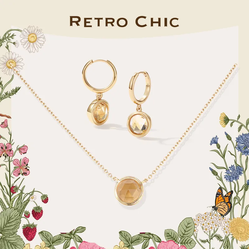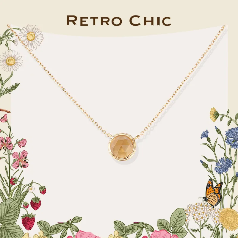 Retro Chic Ожерелье из латуни с позолотой инкрустированное цитрином женское