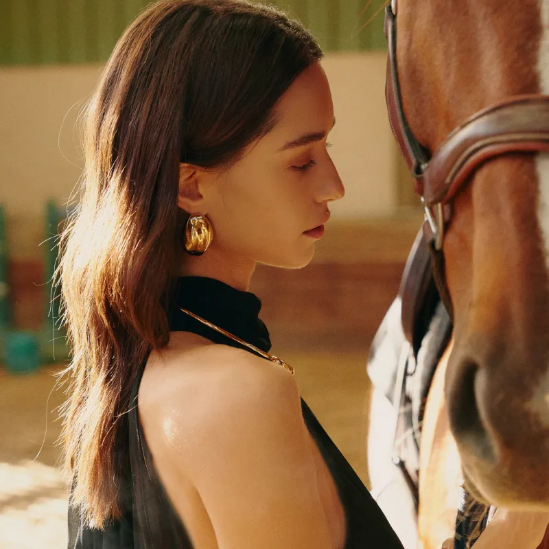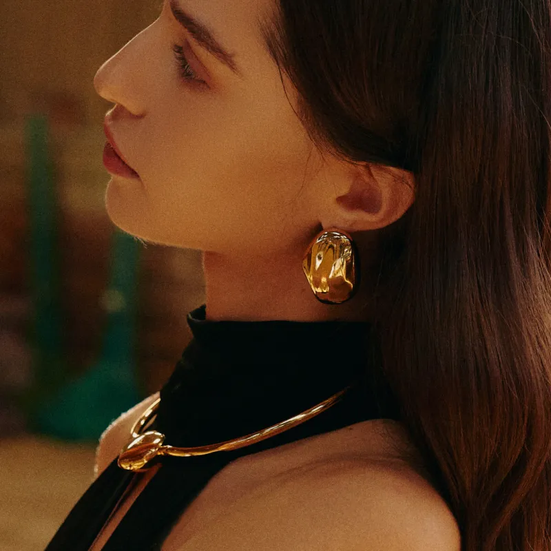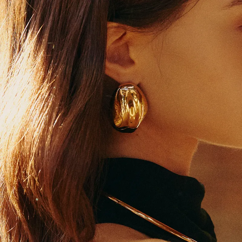 Retro Chic Серьги-кольца с позолоченным броном "Звезда и Луна" Свет и Тень Женские