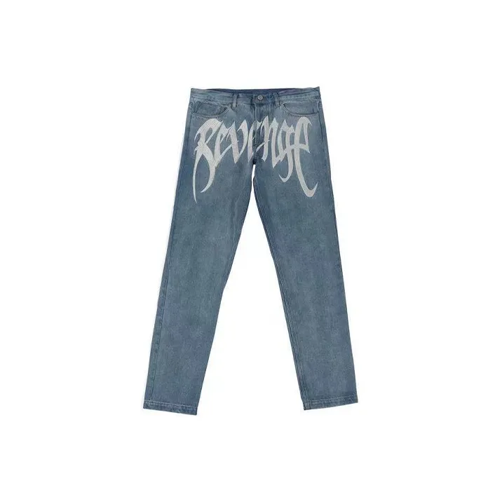 Revenge Прямой крой Брюки Неэластичные Умеренные Джинсы Унисекс Синий