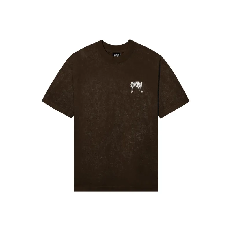 Revenge ACID WASH Вышитый Базовый Т-Shirt Коричневый T-Shirt Унисекс Коричневый