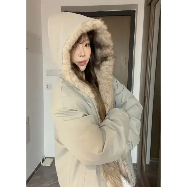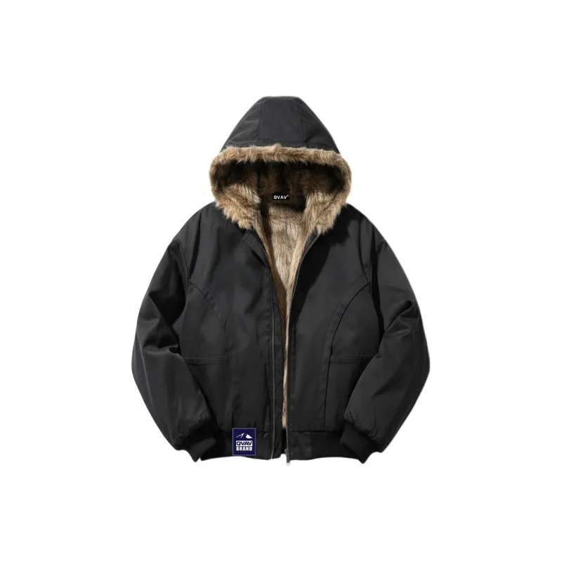Двусторонний с капюшоном плюшевый пальто QVAV хлопковый пуховик унисекс