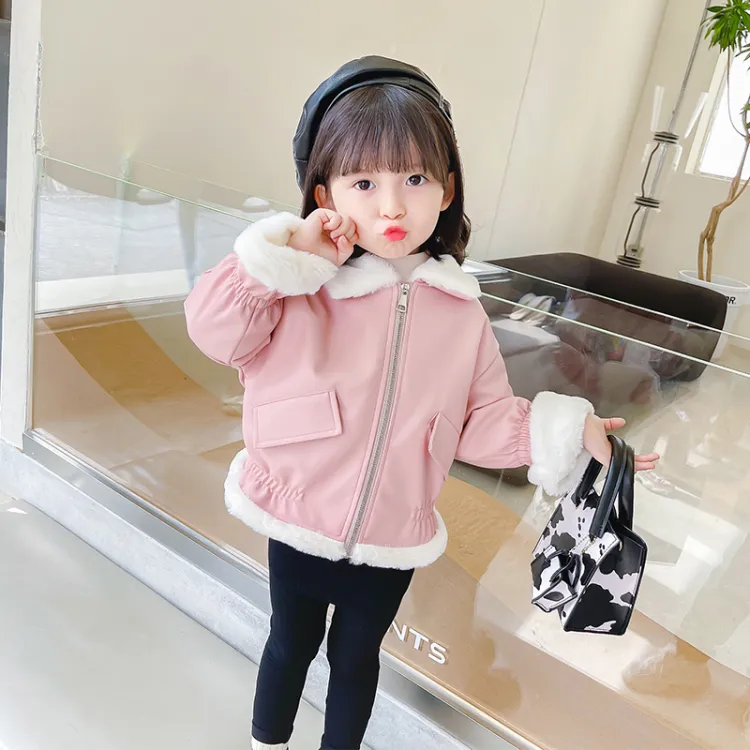RHOBESAM Yiyin Парк развлечений Little Девушка Кожа Куртка 55 Юань Розовый Kids Куртки