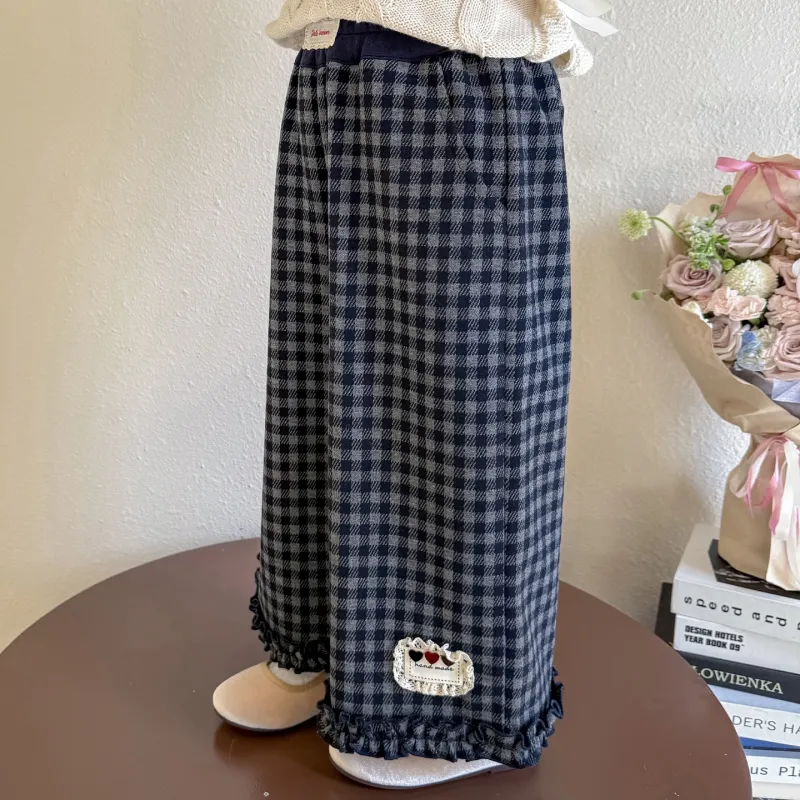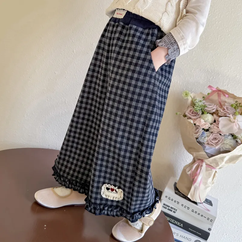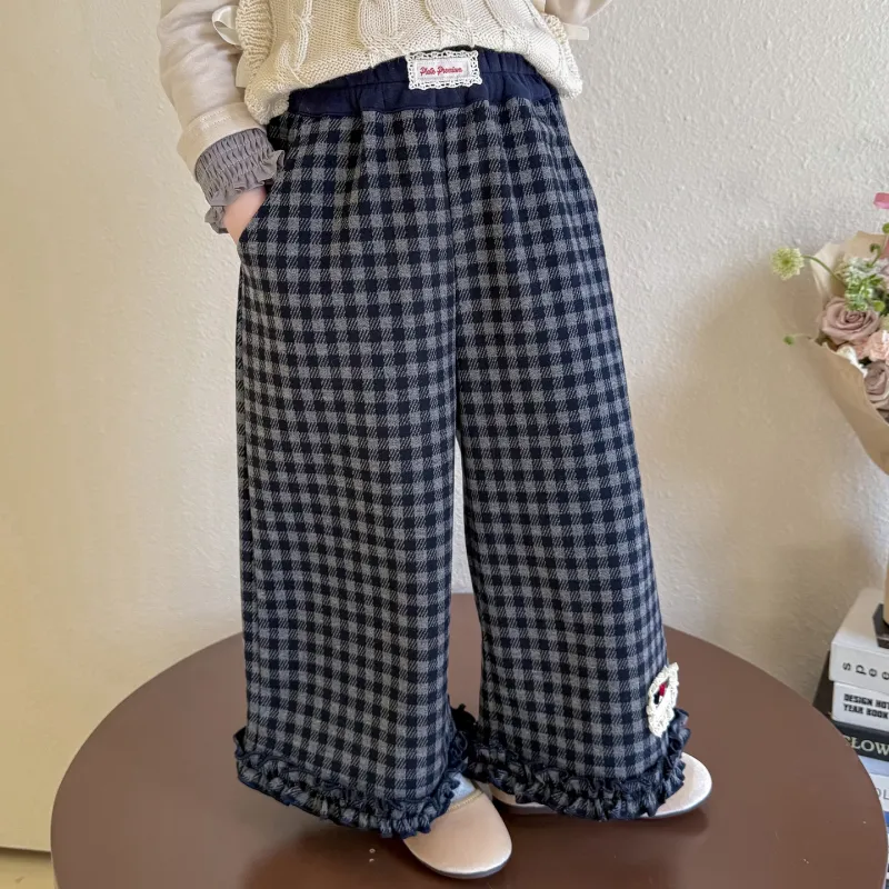 Цвет:Хаха Медведь & Кружевная отделка Этикетка Клетчатые Брюки Изображение Цвет