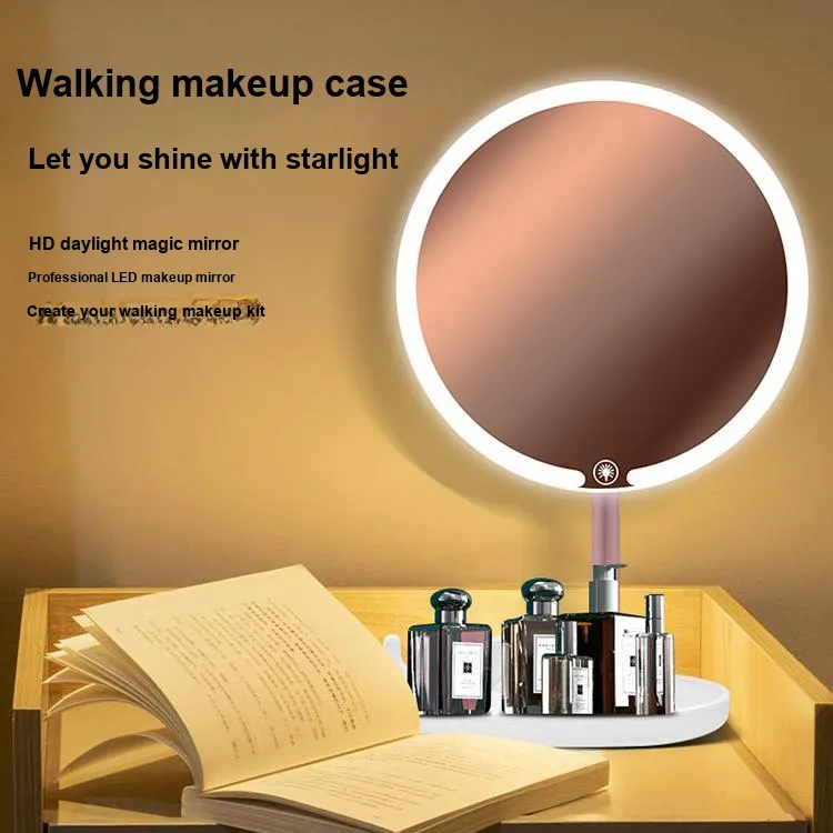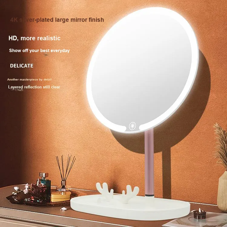 RHOS Зеркало для макияжа с светом для домашнего использования светодиодное зеркало офисное портативное настольное зеркало интернет-тренд ультра-HD