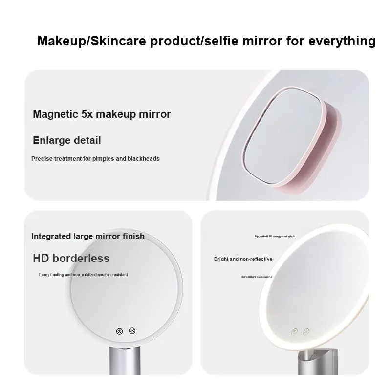 RHOS Широкоугольный LED Зеркало для макияжа Портативный с Светом Умный HD Для домашнего использования Настольный Светлый Макияж Официальное изделие