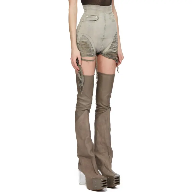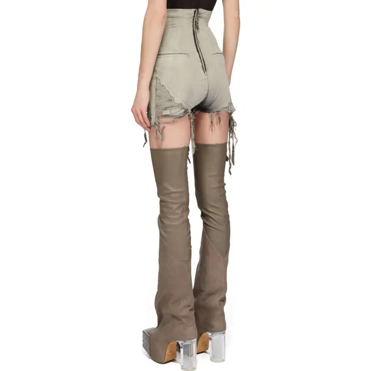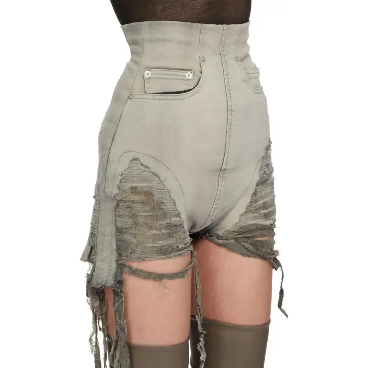RICK OWENS совместный бренд RO FW23 Джинсовые шорты Женские Джинсовый серый