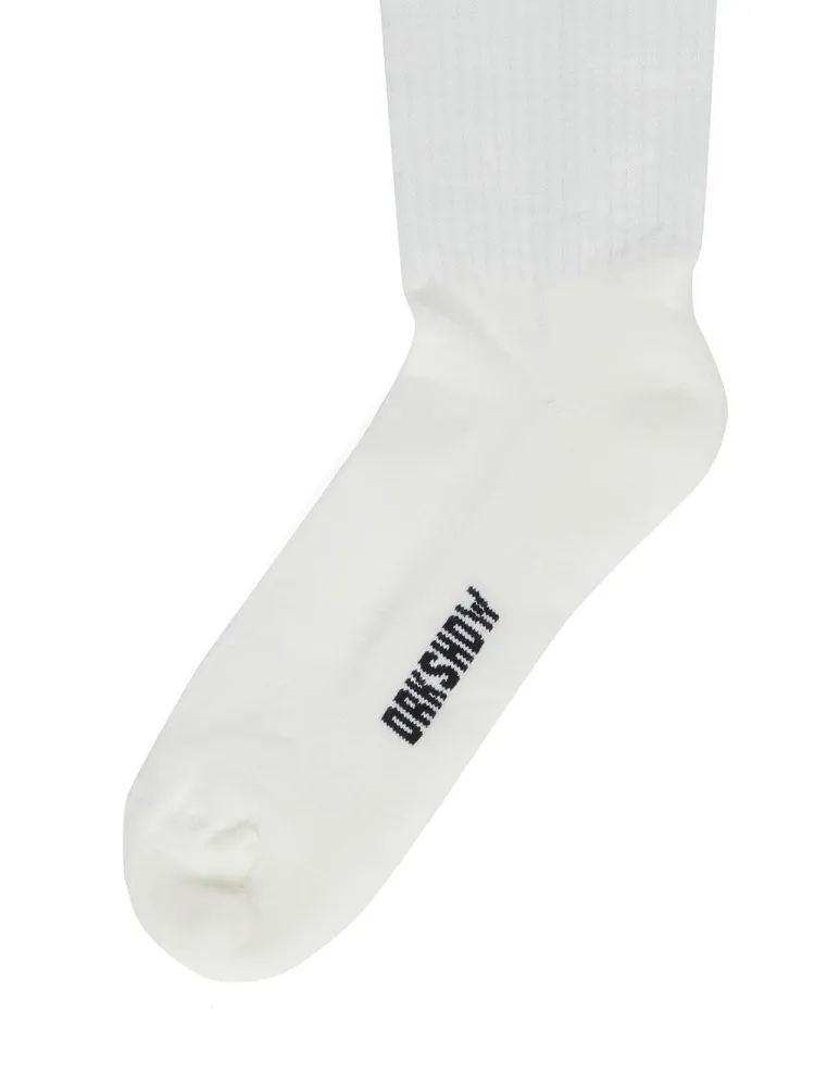 Rick Owens DRKSHDW Носки В Молоко И Черный Хлопок KNIT Высокие Носки Мужские 1 Пачка Белые